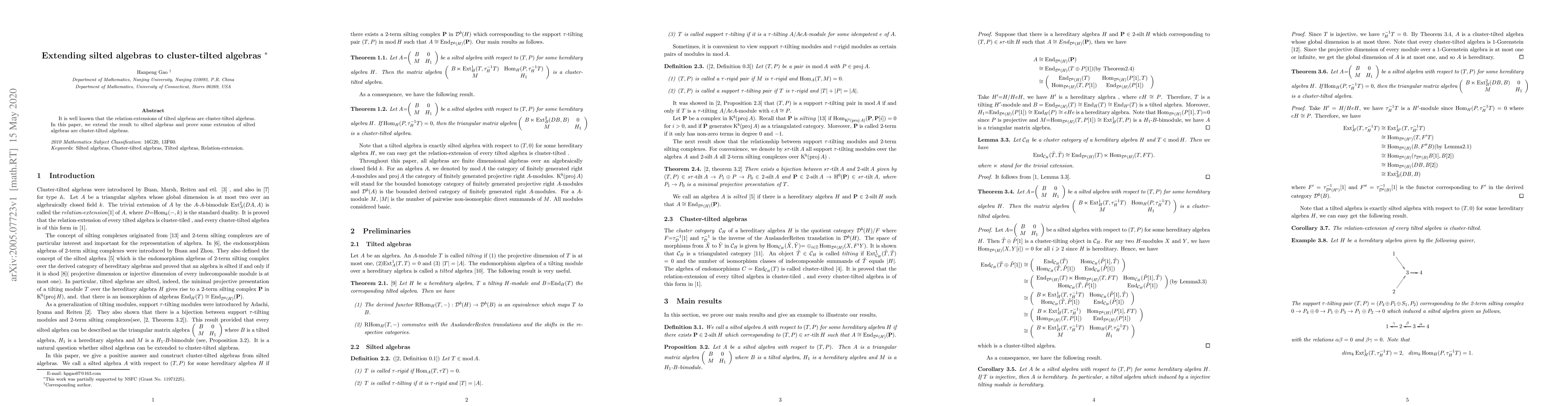 It is well known that the relation-extensions of tilted algebras are cluster-tilted algebras. In this paper, we extend the result to silted algebras and prove some extension of silted algebras are cluster-tilted algebras.