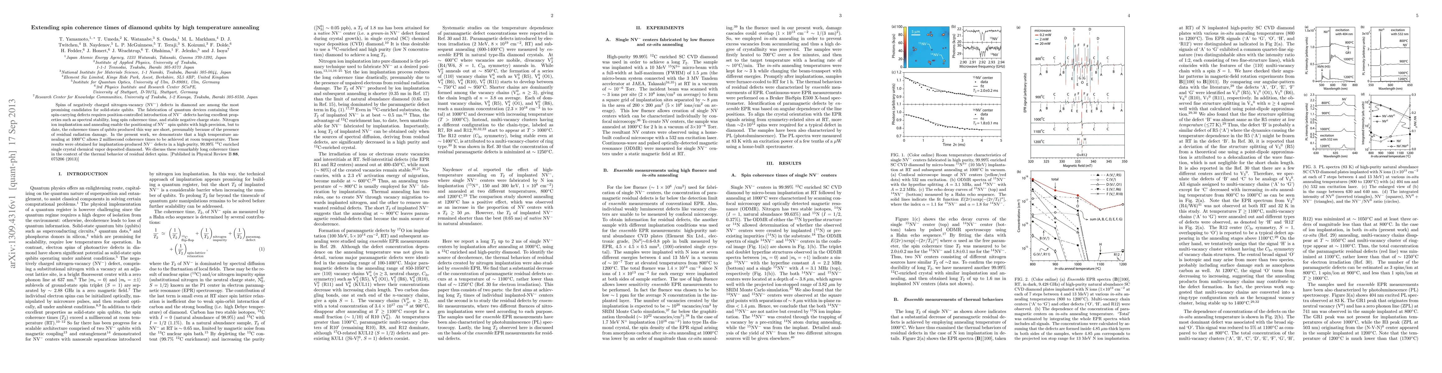 Spins of negatively charged nitrogen-vacancy (NV$^-$) defects in diamond are among the most promising candidates for solid-state qubits. The fabrication of quantum devices containing these spin-carrying defects requires position-controlled introduction of NV$^-$ defects having excellent properties such as spectral stability, long spin coherence time, and stable negative charge state. Nitrogen ion implantation and annealing enable the positioning of NV$^-$ spin qubits with high precision, but to date, the coherence times of qubits produced this way are short, presumably because of the presence of residual radiation damage. In the present work, we demonstrate that a high temperature annealing at 1000$^\circ$C allows 2 millisecond coherence times to be achieved at room temperature. These results were obtained for implantation-produced NV$^-$ defects in a high-purity, 99.99% $^{12}$C enriched single crystal chemical vapor deposited diamond. We discuss these remarkably long coherence times in the context of the thermal behavior of residual defect spins. [Published in Physical Review B {\bf{88}}, 075206 (2013)]