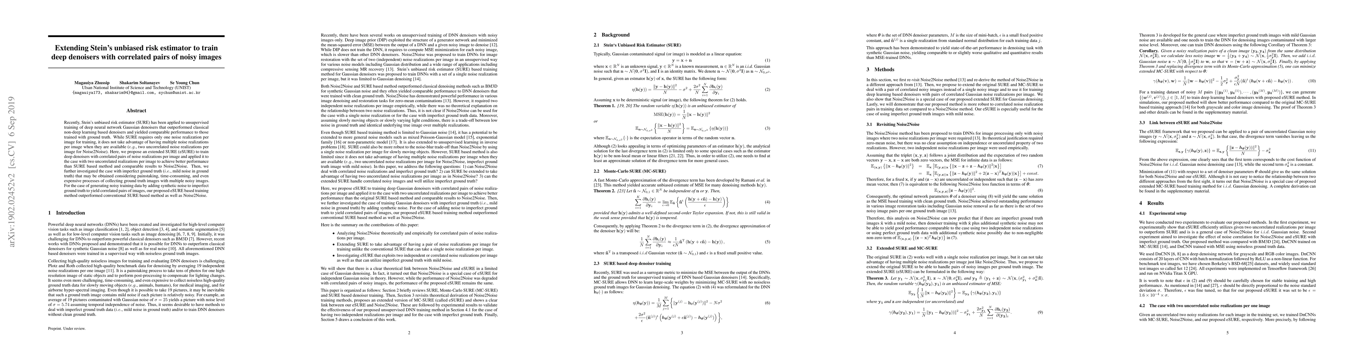 Recently, Stein's unbiased risk estimator (SURE) has been applied to unsupervised training of deep neural network Gaussian denoisers that outperformed classical non-deep learning based denoisers and yielded comparable performance to those trained with ground truth. While SURE requires only one noise realization per image for training, it does not take advantage of having multiple noise realizations per image when they are available (e.g., two uncorrelated noise realizations per image for Noise2Noise). Here, we propose an extended SURE (eSURE) to train deep denoisers with correlated pairs of noise realizations per image and applied it to the case with two uncorrelated realizations per image to achieve better performance than SURE based method and comparable results to Noise2Noise. Then, we further investigated the case with imperfect ground truth (i.e., mild noise in ground truth) that may be obtained considering painstaking, time-consuming, and even expensive processes of collecting ground truth images with multiple noisy images. For the case of generating noisy training data by adding synthetic noise to imperfect ground truth to yield correlated pairs of images, our proposed eSURE based training method outperformed conventional SURE based method as well as Noise2Noise.