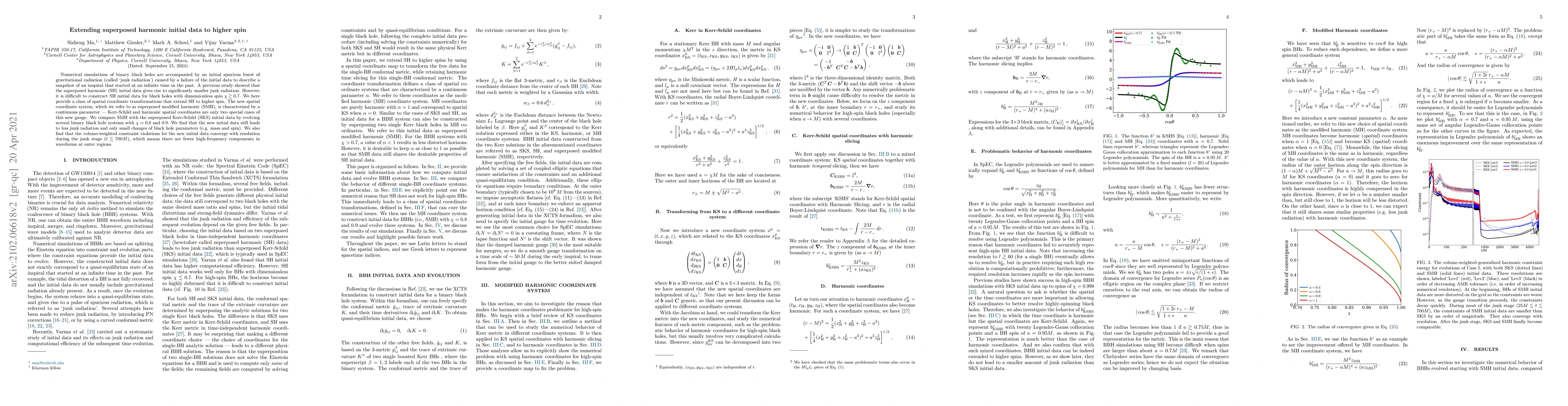 This paper introduces a new spatial coordinate transformation called superposed modified harmonic (SMH) to extend superposed harmonic (SH) initial data to higher spin black holes, reducing "junk radiation" and maintaining minimal changes in black hole parameters. SMH outperforms superposed Kerr-Schild (SKS) initial data, showing lower constraint violations and fewer high-frequency waveform components.