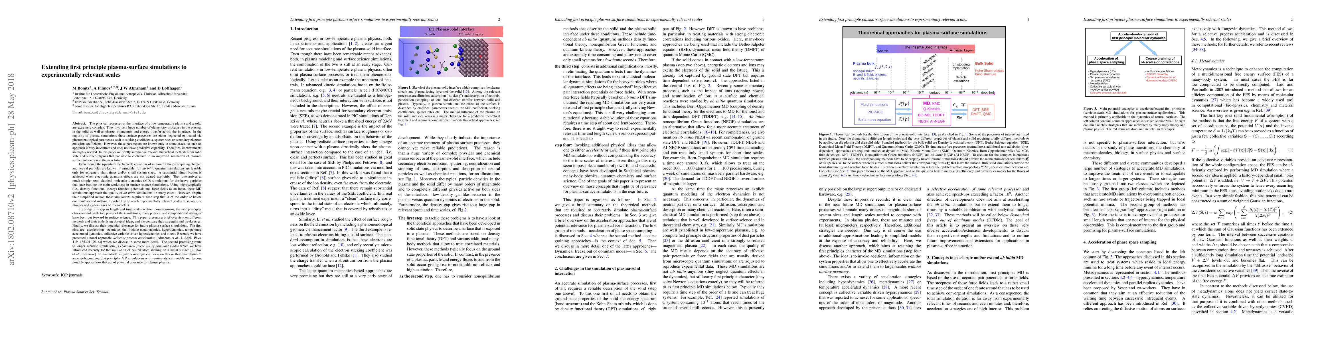 This paper discusses the complexity of plasma-surface interactions and proposes methods to improve simulations to experimentally relevant scales. It reviews theoretical methods from solid state and surface physics, focusing on semi-classical molecular dynamics as a compromise between \textit{ab initio} quantum simulations and phenomenological approaches, while highlighting the challenges and strategies to extend these simulations over longer time scales.