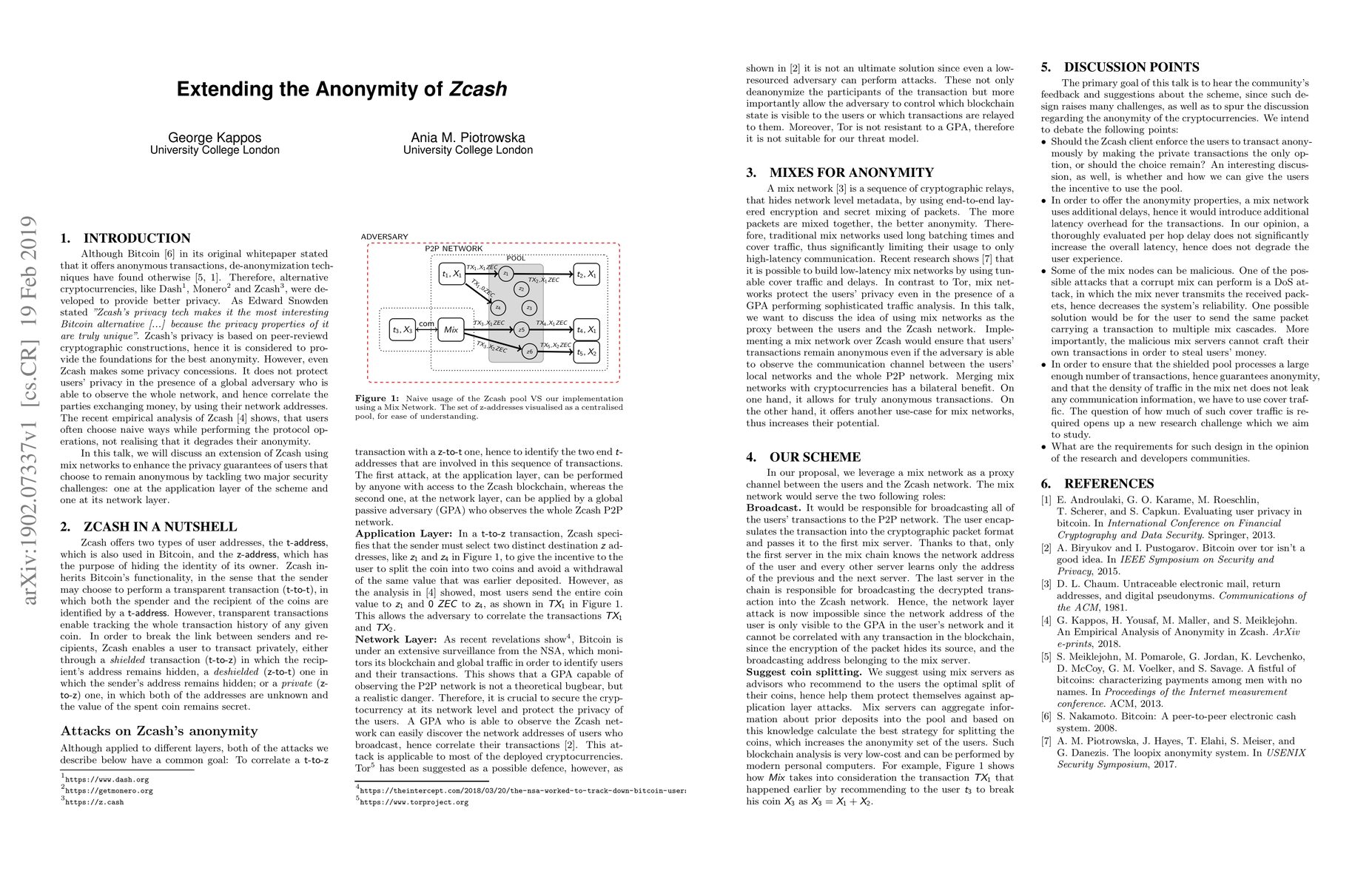 Although Bitcoin in its original whitepaper stated that it offers anonymous transactions, de-anonymization techniques have found otherwise. Therefore, alternative cryptocurrencies, like Dash, Monero, and Zcash, were developed to provide better privacy. As Edward Snowden stated, "Zcash's privacy tech makes it the most interesting Bitcoin alternative (...) because the privacy properties of it are truly unique". Zcash's privacy is based on peer-reviewed cryptographic constructions, hence it is considered to provide the foundations for the best anonymity. However, even Zcash makes some privacy concessions. It does not protect users' privacy in the presence of a global adversary who is able to observe the whole network, and hence correlate the parties exchanging money, by using their network addresses. The recent empirical analysis of Zcash shows, that users often choose naive ways while performing the protocol operations, not realizing that it degrades their anonymity. In this talk, we will discuss an extension of Zcash using mix networks to enhance the privacy guarantees of users that choose to remain anonymous by tackling two major security challenges: one at the application layer of the scheme and one at its network layer.