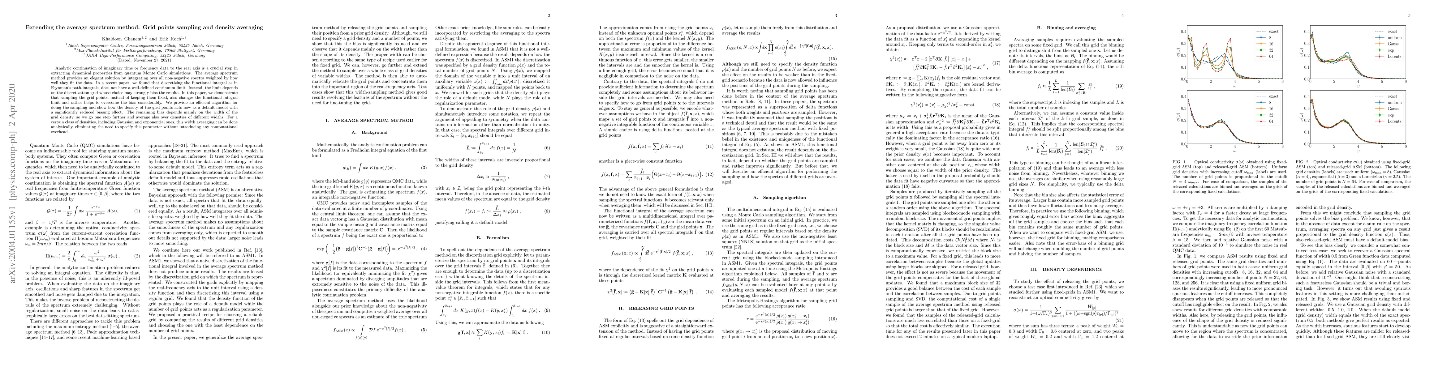 Analytic continuation of imaginary time or frequency data to the real axis is a crucial step in extracting dynamical properties from quantum Monte Carlo simulations. The average spectrum method provides an elegant solution by integrating over all non-negative spectra weighted by how well they fit the data. In a recent paper, we found that discretizing the functional integral as in Feynman's path-integrals, does not have a well-defined continuum limit. Instead, the limit depends on the discretization grid whose choice may strongly bias the results. In this paper, we demonstrate that sampling the grid points, instead of keeping them fixed, also changes the functional integral limit and rather helps to overcome the bias considerably. We provide an efficient algorithm for doing the sampling and show how the density of the grid points acts now as a default model with a significantly reduced biasing effect. The remaining bias depends mainly on the width of the grid density, so we go one step further and average also over densities of different widths. For a certain class of densities, including Gaussian and exponential ones, this width averaging can be done analytically, eliminating the need to specify this parameter without introducing any computational overhead.