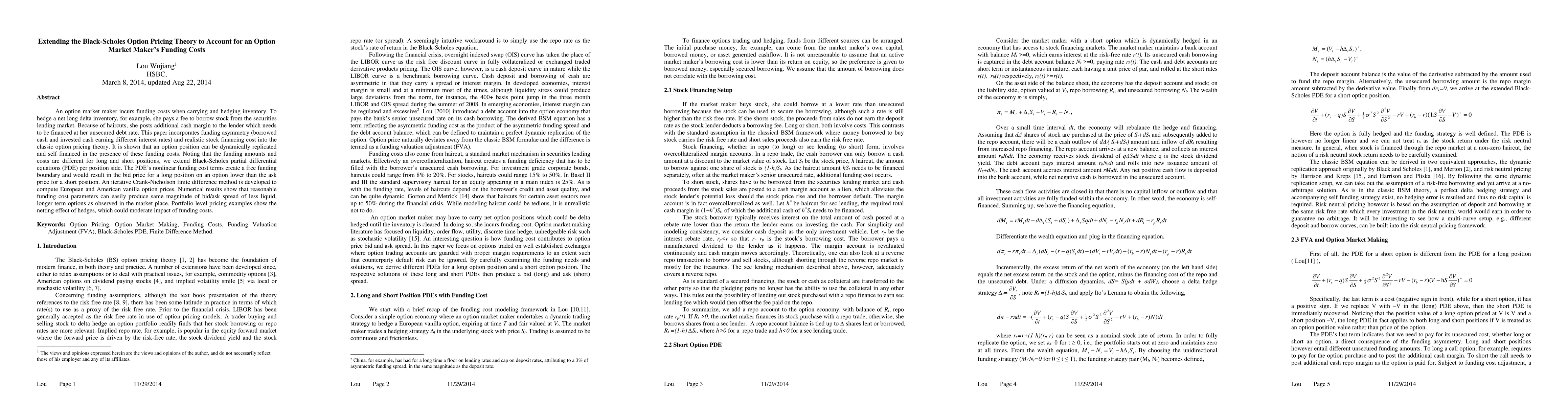This paper extends Black-Scholes option pricing theory to include funding costs for market makers, showing that funding asymmetry and realistic stock financing costs can dynamically replicate and self-finance an option position. It develops extended Black-Scholes PDEs with nonlinear funding cost terms, resulting in a bid/ask spread reflective of market observations.