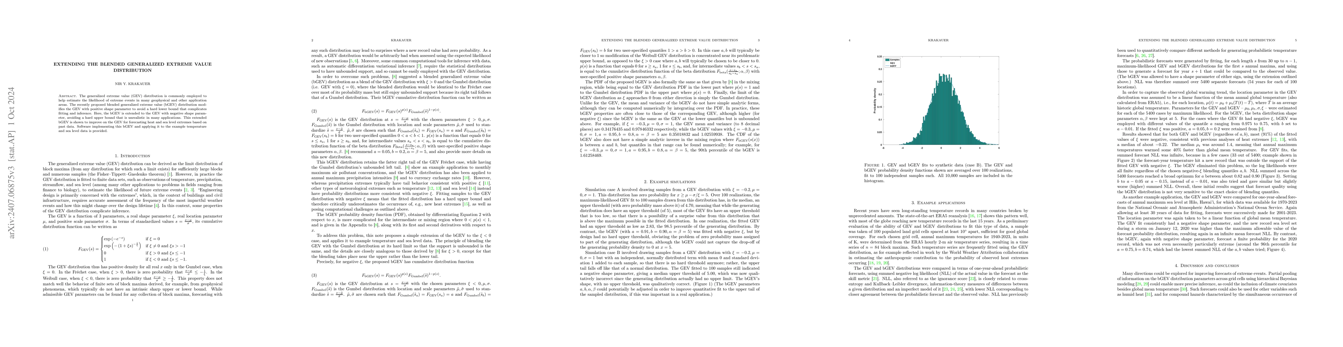 The generalized extreme value (GEV) distribution is commonly employed to help estimate the likelihood of extreme events in many geophysical and other application areas. The recently proposed blended generalized extreme value (bGEV) distribution modifies the GEV with positive shape parameter to avoid a hard lower bound that complicates fitting and inference. Here, the bGEV is extended to the GEV with negative shape parameter, avoiding a hard upper bound that is unrealistic in many applications. This extended bGEV is shown to improve on the GEV for forecasting heat and sea level extremes based on past data. Software implementing this bGEV and applying it to the example temperature and sea level data is provided.