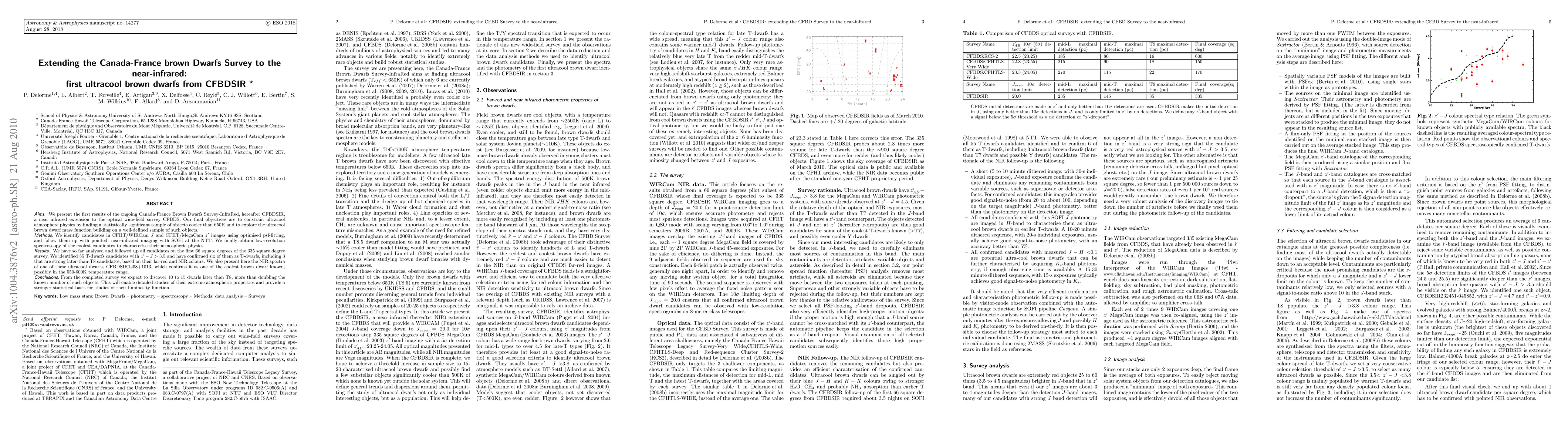 The Canada-France Brown Dwarfs Survey-InfraRed (CFBDSIR) aims to identify ultracool brown dwarfs cooler than 650K. The first results from the survey have confirmed six T-dwarfs, including three later-than-T8 candidates, expanding the known population of such objects.