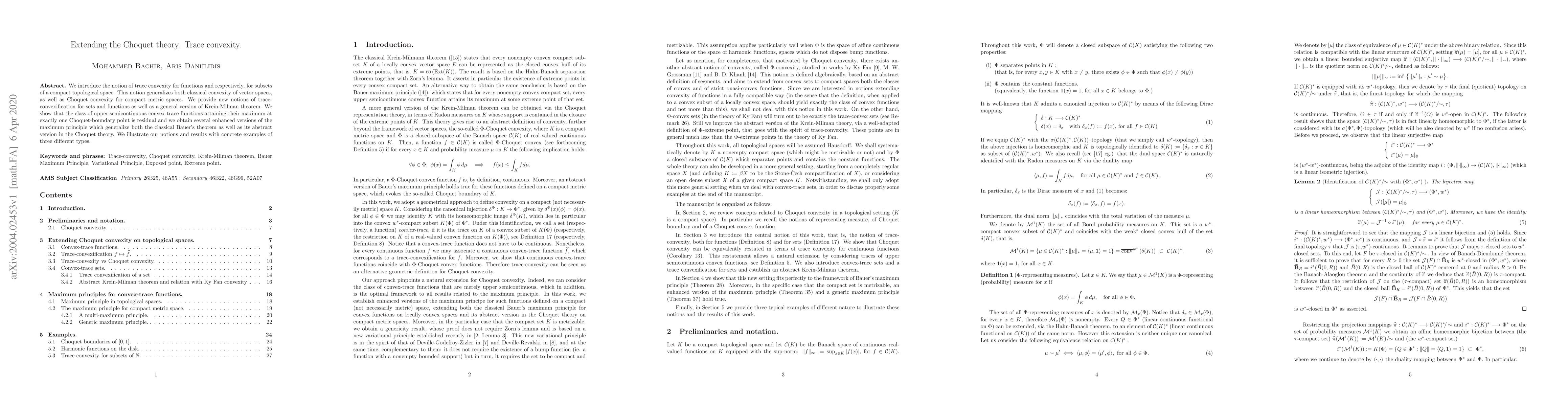 Researchers introduce trace convexity, a generalization of classical and Choquet convexity, and derive new principles for upper semicontinuous functions, including a residual class of maximum-attaining functions at one boundary point.