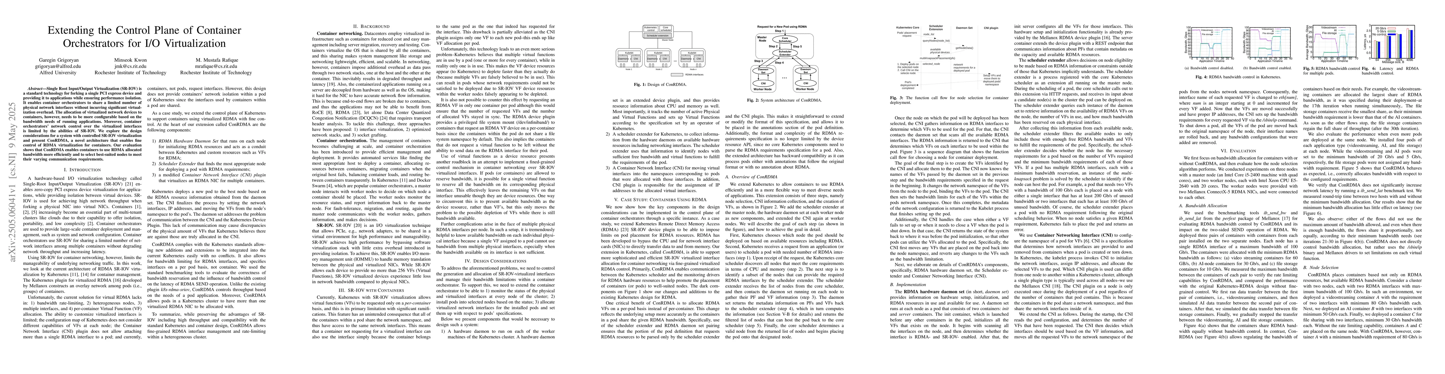 ConRDMA, a novel architecture that extends container orchestrators' control over SR-IOV virtualization for fine-grained RDMA management.