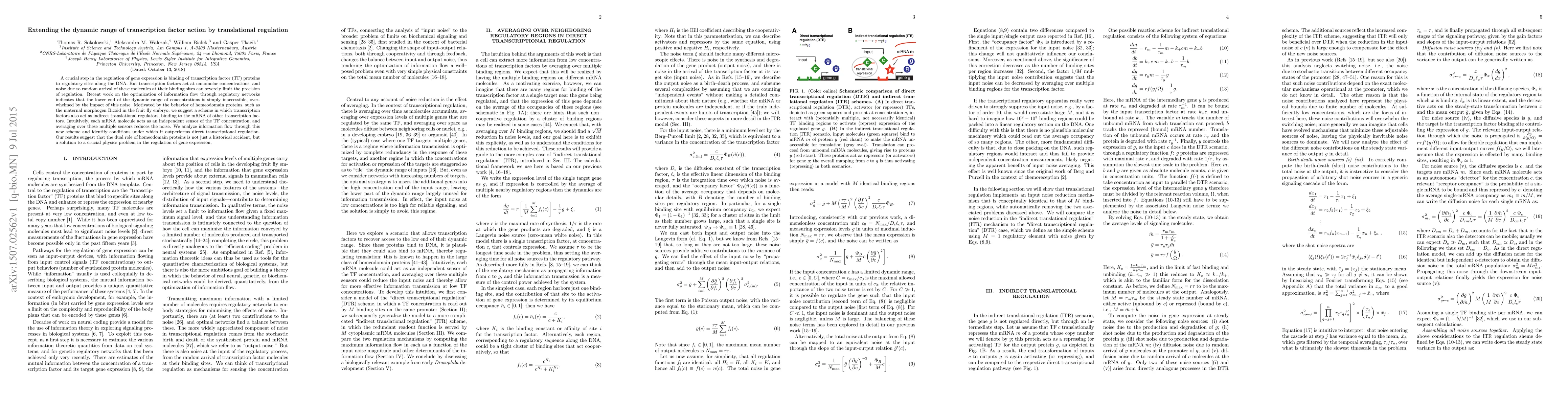 Research suggests that transcription factors can extend their dynamic range of action by acting as indirect translational regulators, reducing noise in gene expression regulation. This dual role may be a solution to the physics problem of regulating gene expression at low concentrations.