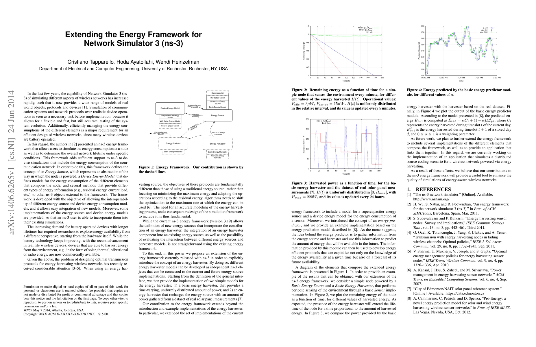 Researchers extend ns-3 energy framework to include energy harvesting, proposing new models for energy harvesters and predicting future energy availability.