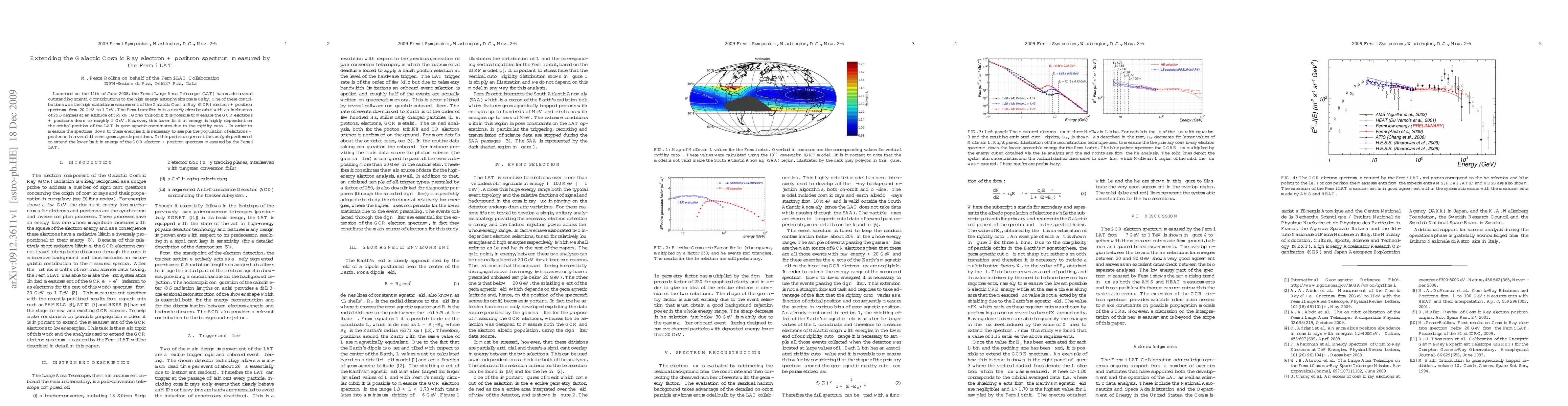 This research extends the Galactic Cosmic Ray electron + positron spectrum measured by the Fermi Large Area Telescope (LAT) down to lower energies, addressing the limitations imposed by the satellite's orbit and geomagnetic cutoff. The analysis aims to sample electrons + positrons across various geomagnetic positions to achieve this extension.