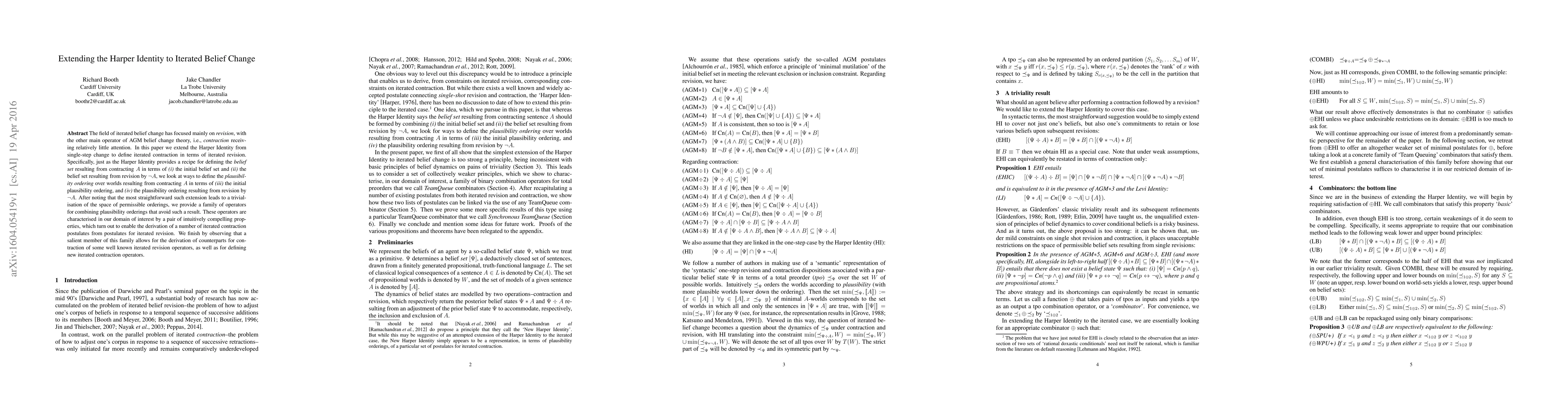 The field of iterated belief change has focused mainly on revision, with the other main operator of AGM belief change theory, i.e. contraction, receiving relatively little attention. In this paper we extend the Harper Identity from single-step change to define iterated contraction in terms of iterated revision. Specifically, just as the Harper Identity provides a recipe for defining the belief set resulting from contracting A in terms of (i) the initial belief set and (ii) the belief set resulting from revision by not-A, we look at ways to define the plausibility ordering over worlds resulting from contracting A in terms of (iii) the initial plausibility ordering, and (iv) the plausibility ordering resulting from revision by not-A. After noting that the most straightforward such extension leads to a trivialisation of the space of permissible orderings, we provide a family of operators for combining plausibility orderings that avoid such a result. These operators are characterised in our domain of interest by a pair of intuitively compelling properties, which turn out to enable the derivation of a number of iterated contraction postulates from postulates for iterated revision. We finish by observing that a salient member of this family allows for the derivation of counterparts for contraction of some well known iterated revision operators, as well as for defining new iterated contraction operators.