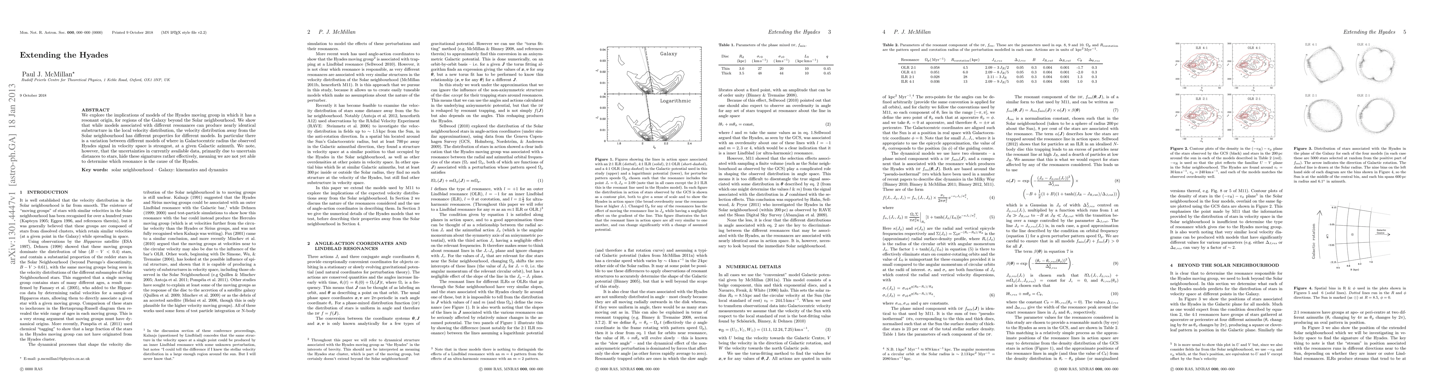 We explore the implications of models of the Hyades moving group in which it has a resonant origin, for regions of the Galaxy beyond the Solar neighbourhood. We show that while models associated with different resonances can produce nearly identical substructure in the local velocity distribution, the velocity distribution away from the Solar neighbourhood has different properties for different models. In particular there is a variation between different models of where in Galactocentric radius the observed Hyades signal in velocity space is strongest, at a given Galactic azimuth. We note, however, that the uncertainties in currently available data, primarily due to uncertain distances to stars, hide these signatures rather effectively, meaning we are not yet able to determine which resonance is the cause of the Hyades.