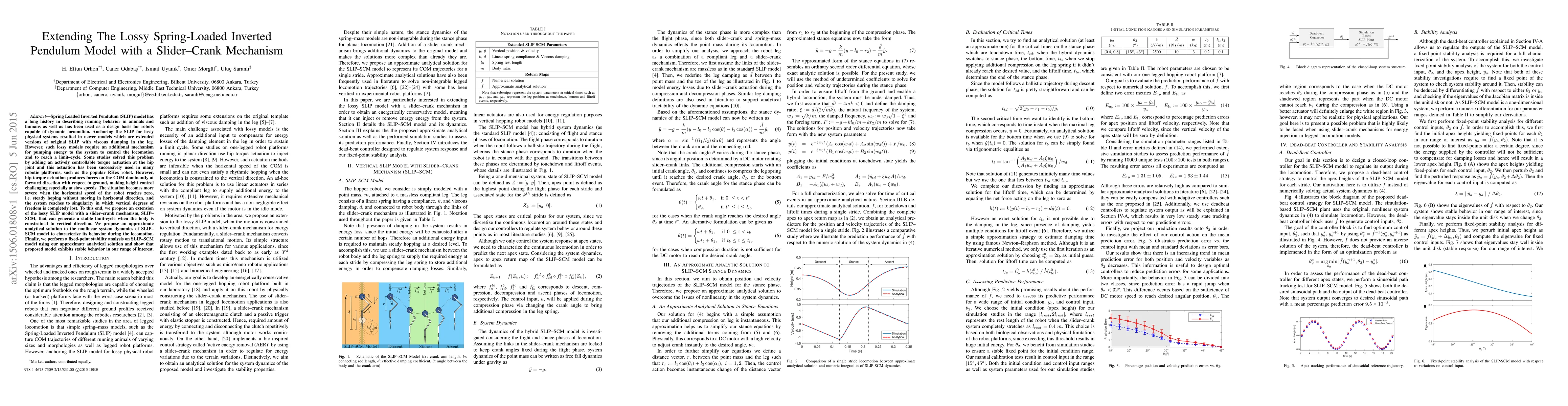 The paper extends the lossy Spring Loaded Inverted Pendulum (SLIP) model by incorporating a slider-crank mechanism (SLIP-SCM) to enhance vertical height control, especially during stationary hopping. It provides an analytical solution and stability analysis, demonstrating the model's capability to maintain stable limit-cycles even in vertical constraints.