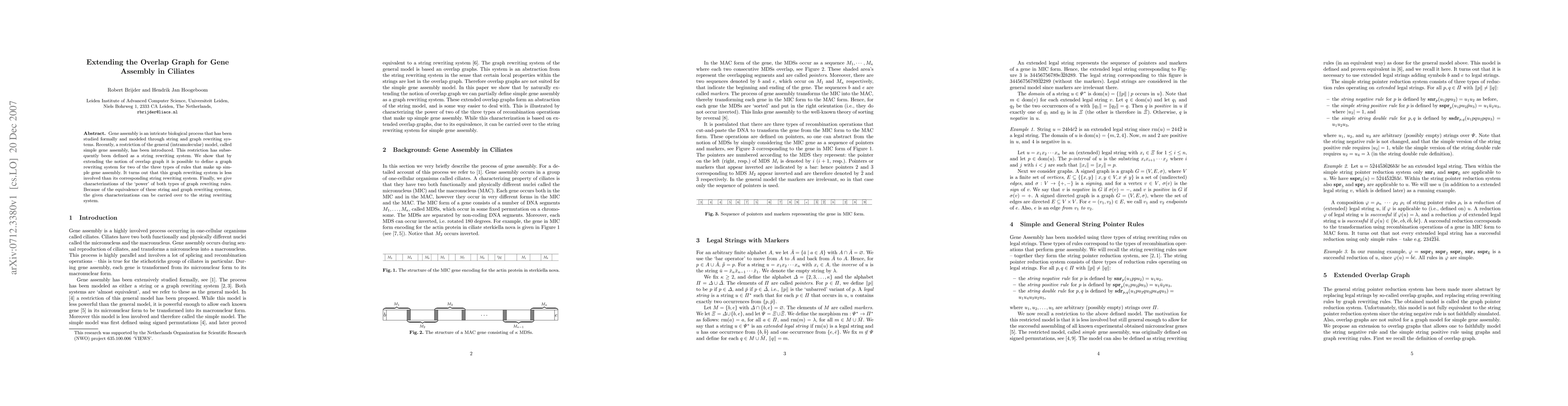 This paper extends the overlap graph to define a graph rewriting system for two types of rules in simple gene assembly, showing it to be less complex than the corresponding string rewriting system. It also characterizes the power of these graph rewriting rules, transferring these insights to the string rewriting system.
