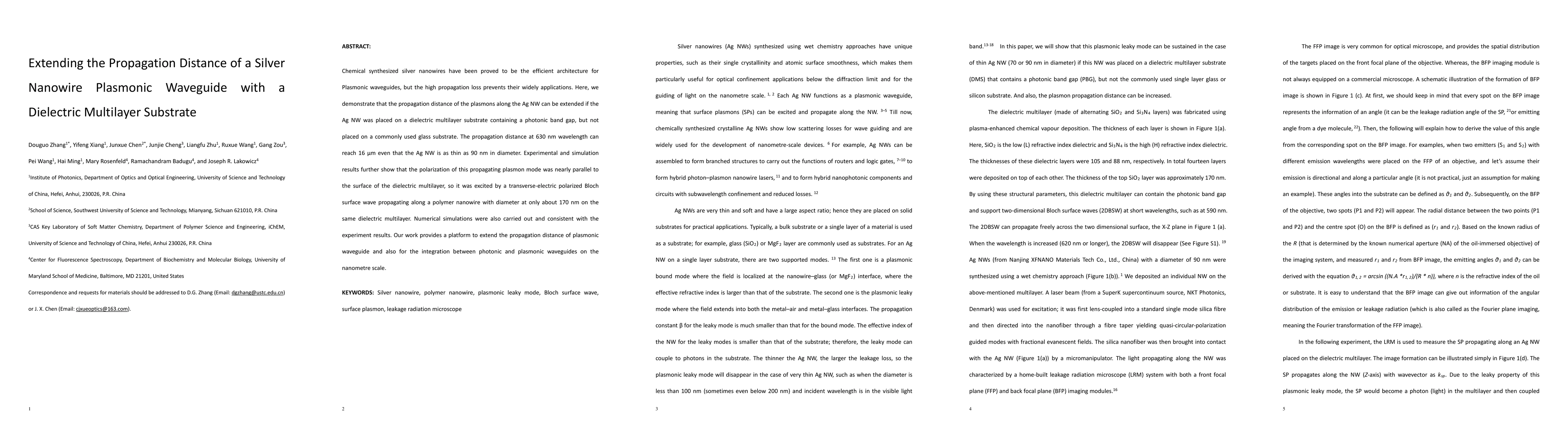 This paper demonstrates that placing silver nanowire plasmonic waveguides on a dielectric multilayer substrate with a photonic band gap significantly extends their propagation distance, reaching up to 16 µm at 630 nm wavelength, compared to conventional glass substrates. The study combines experimental and simulation results to show that this enhancement is due to the excitation of a transverse-electric polarized Bloch surface wave.