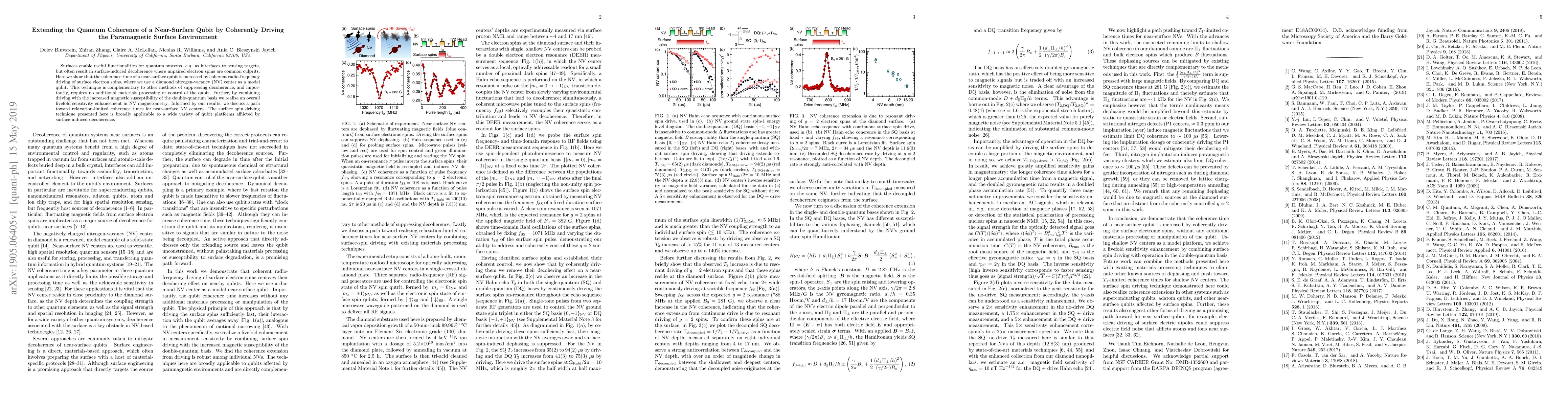 This paper demonstrates that coherent radio-frequency driving of surface electron spins can significantly extend the coherence time of a near-surface qubit, using a diamond nitrogen-vacancy (NV) center as a model. This method enhances NV magnetometry sensitivity by a factor of five and is broadly applicable to various qubits suffering from surface-induced decoherence.