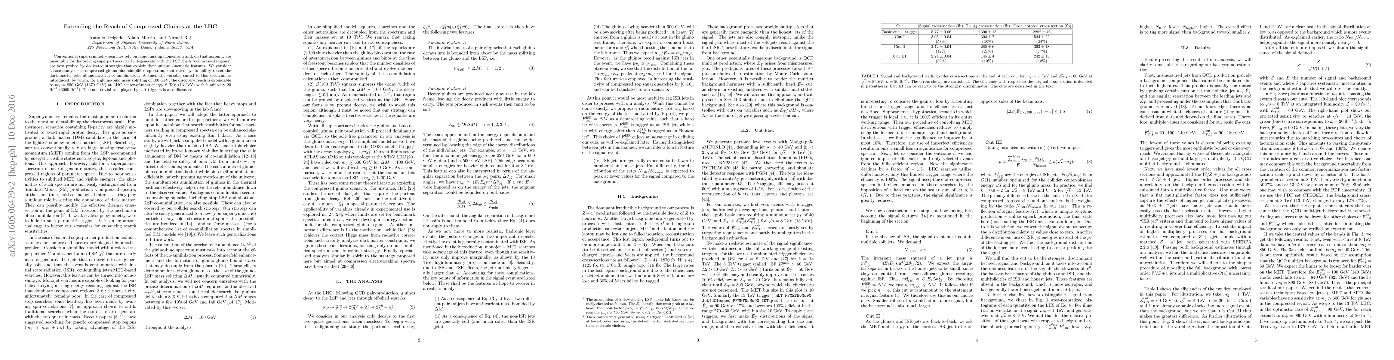 Conventional supersymmetry searches rely on large missing momentum and, on that account, are unsuitable for discovering superpartners nearly degenerate with the LSP. Such "compressed regions" are best probed by dedicated strategies that exploit their unique kinematic features. We consider a case study of a compressed gluino-bino simplified spectrum, motivated by its ability to set the dark matter relic abundance via co-annihilation. A kinematic variable suited to this spectrum is introduced, by which, for a gluino-bino mass splitting of 100 GeV, the discovery reach is extendable to m(gluino) = 850 GeV (1370 GeV) at LHC center-of-mass energy 8 TeV (13 TeV) with luminosity 20 inverse fb (3000 inverse fb). The non-trivial role played by soft triggers is also discussed.
