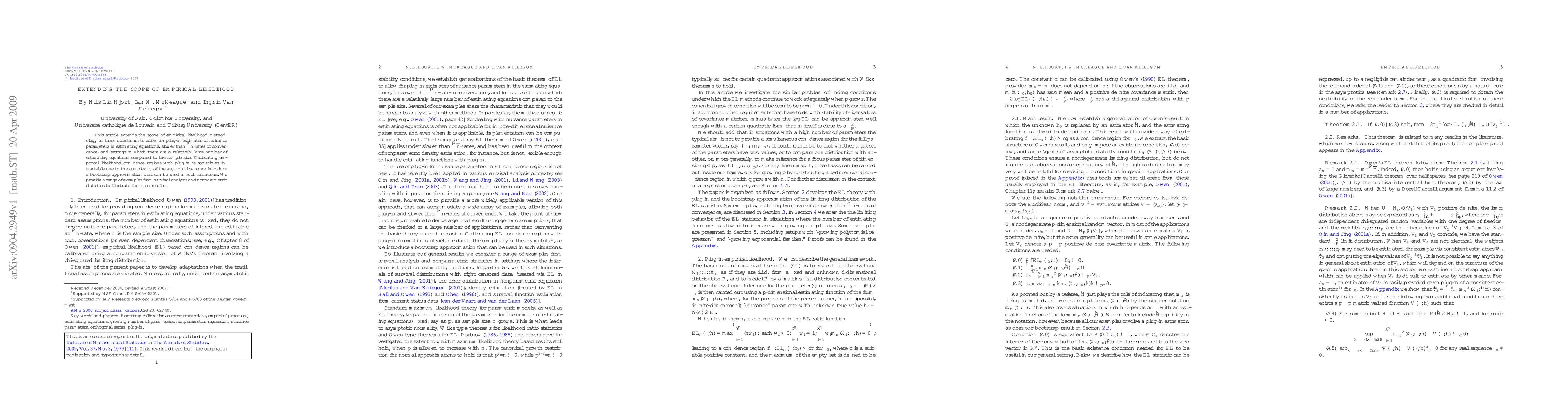 This paper extends empirical likelihood methodology to handle nuisance parameters, slower convergence rates, and large numbers of estimating equations, offering a bootstrap approximation for calibration in complex scenarios.