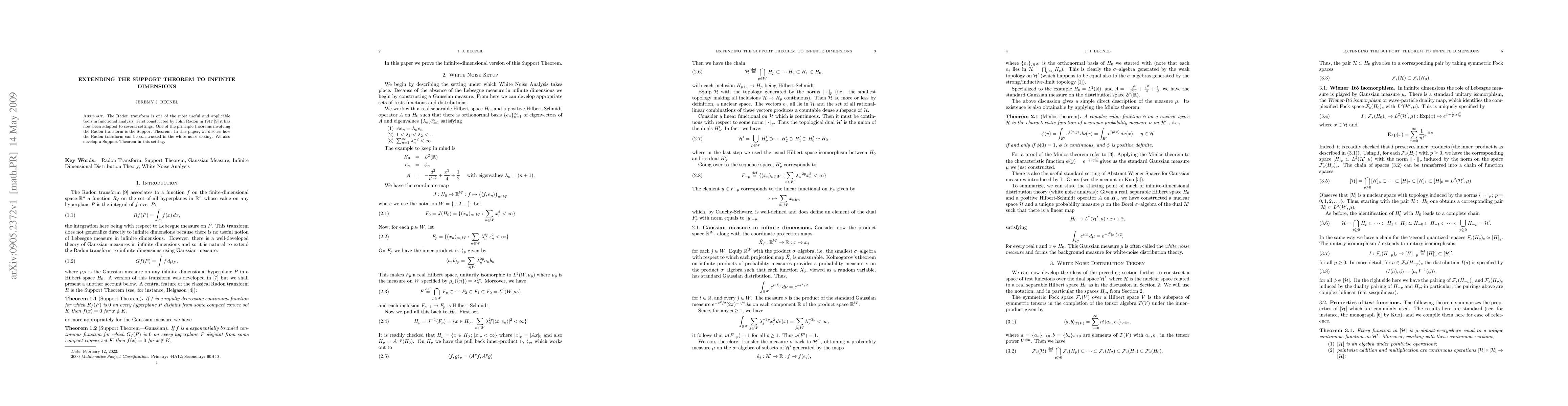 This paper extends the classical Support Theorem of the Radon transform to infinite dimensions, specifically in the context of white noise analysis, thereby broadening its applicability in functional analysis. The authors develop a new Support Theorem tailored for this setting, enhancing the utility of the Radon transform in advanced mathematical applications.