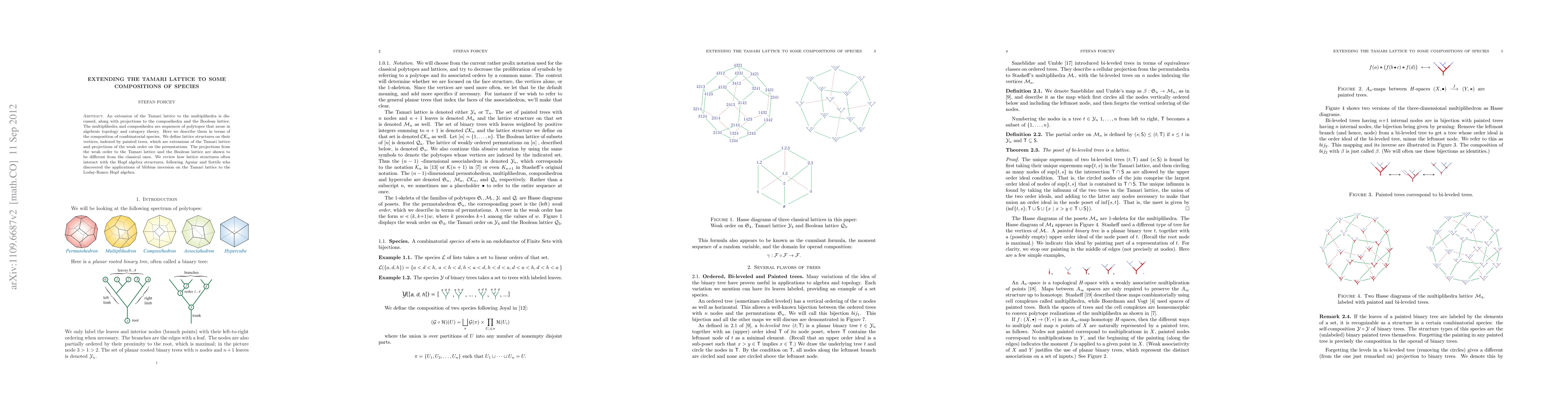 An extension of the Tamari lattice to the multiplihedra is discussed, along with projections to the composihedra and the Boolean lattice. The multiplihedra and composihedra are sequences of polytopes that arose in algebraic topology and category theory. Here we describe them in terms of the composition of combinatorial species. We define lattice structures on their vertices, indexed by painted trees, which are extensions of the Tamari lattice and projections of the weak order on the permutations. The projections from the weak order to the Tamari lattice and the Boolean lattice are shown to be different from the classical ones. We generalize the Tamari lattice to graph tubings--as is also described by Ronco. We review how lattice structures often interact with the Hopf algebra structures, following Aguiar and Sottile who discovered the applications of Mobius inversion on the Tamari lattice to the Loday-Ronco Hopf algebra.