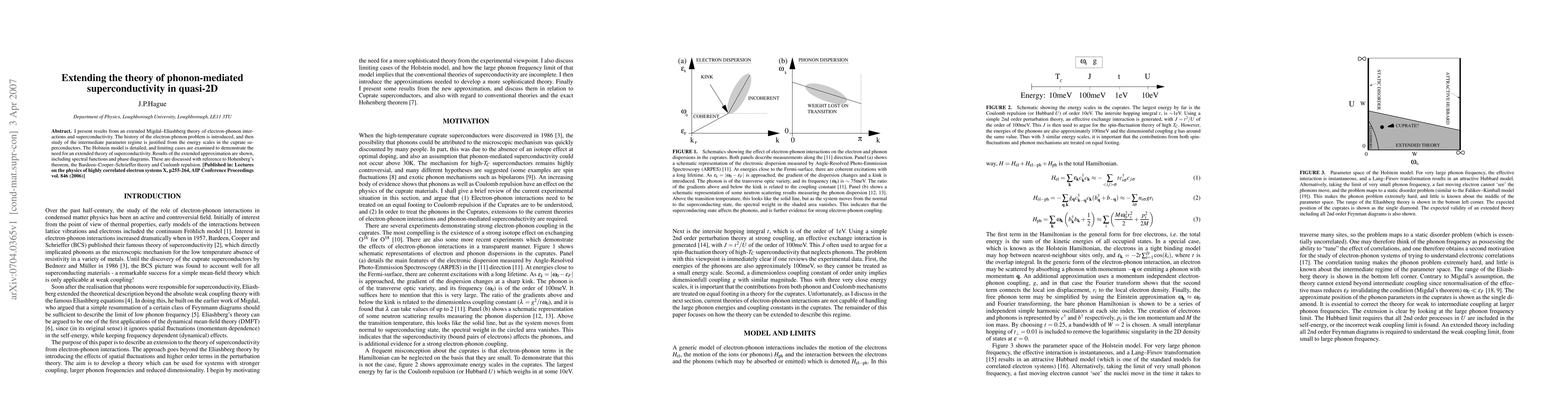 I present results from an extended Migdal-Eliashberg theory of electron-phonon interactions and superconductivity. The history of the electron-phonon problem is introduced, and then study of the intermediate parameter regime is justified from the energy scales in the cuprate superconductors. The Holstein model is detailed, and limiting cases are examined to demonstrate the need for an extended theory of superconductivity. Results of the extended approximation are shown, including spectral functions and phase diagrams. These are discussed with reference to Hohenberg's theorem, the Bardeen-Cooper-Schrieffer theory and Coulomb repulsion.