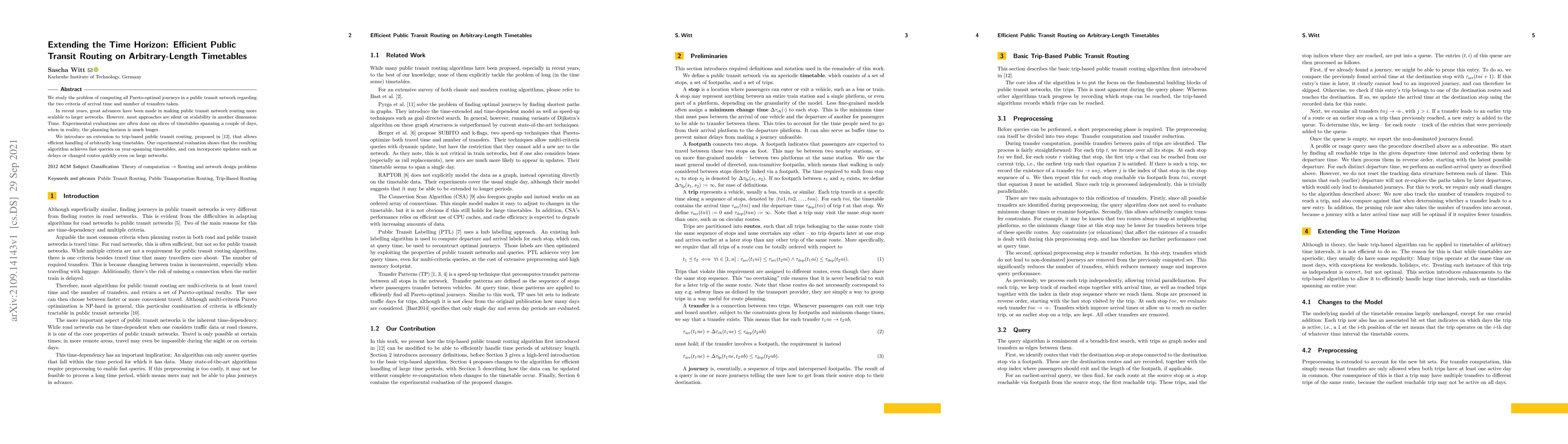 This paper proposes an efficient algorithm for computing Pareto-optimal journeys in public transit networks over long time horizons, addressing scalability issues beyond typical short-term evaluations. The new method extends existing trip-based routing to handle year-spanning timetables and quickly adapt to updates.