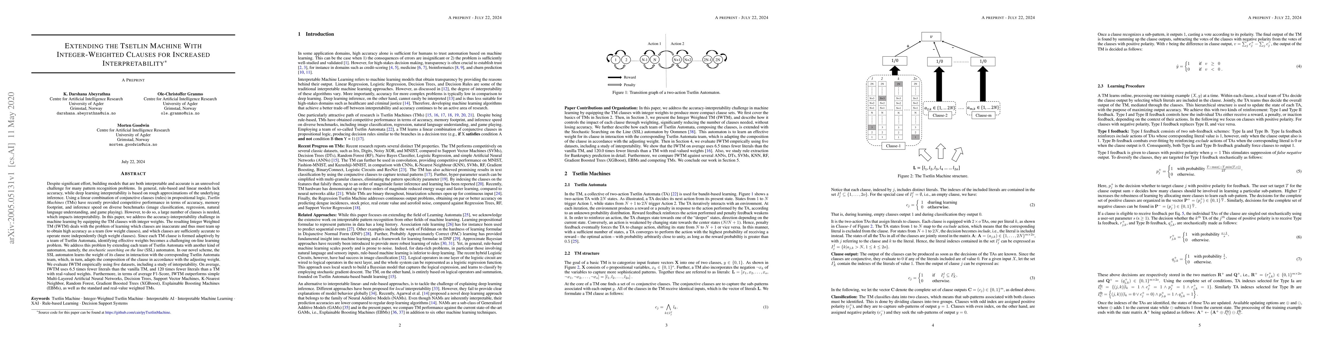 The research introduces Integer Weighted Tsetlin Machines (IWTM) that extend Tsetlin Machines (TM) with integer weights for clauses, enhancing interpretability without compromising accuracy. This is achieved by using a Stochastic Search on the Line (SSL) automaton to learn clause weights, allowing low-precision clauses to team up and high-precision clauses to operate more independently.