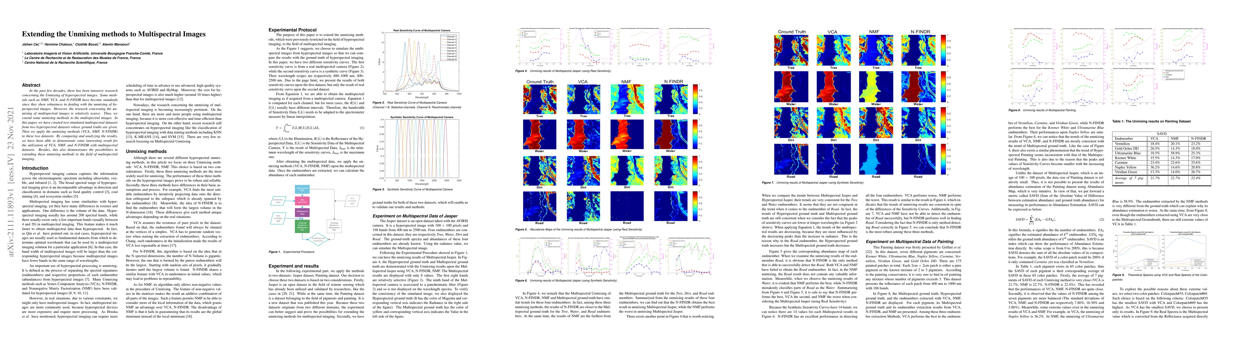 This paper extends established hyperspectral unmixing methods (NMF, VCA, N-FINDR) to multispectral images, applying them to simulated datasets derived from hyperspectral data. The results reveal potential for adapting these methods to multispectral imaging.