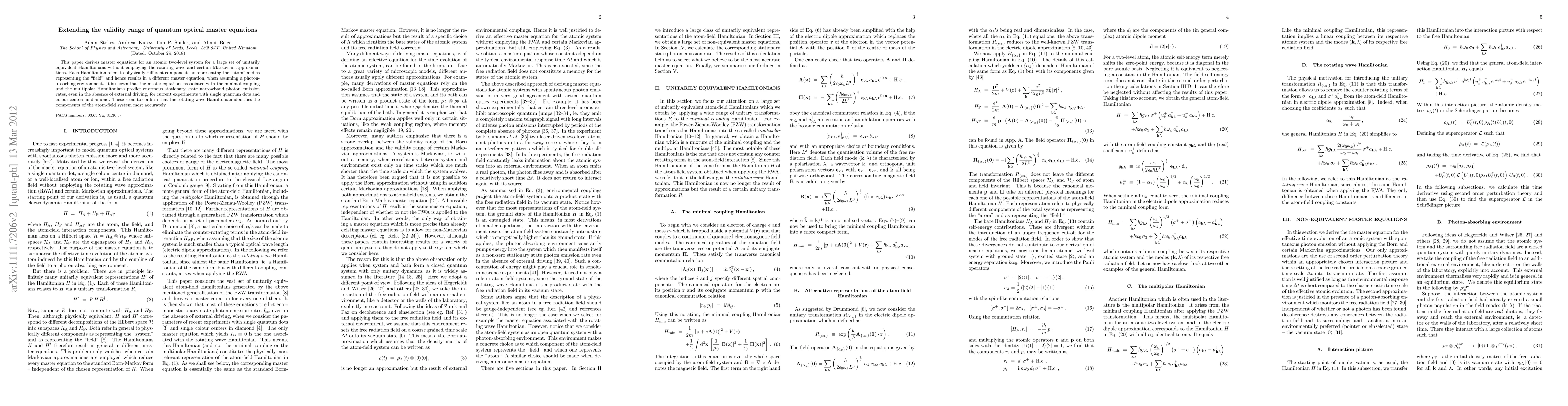 This paper derives master equations for an atomic two-level system for a large set of unitarily equivalent Hamiltonians without employing the rotating wave and certain Markovian approximations. Each Hamiltonian refers to physically different components as representing the "atom" and as representing the "field" and hence results in a different master equation, when assuming a photon-absorbing environment. It is shown that the master equations associated with the minimal coupling and the multipolar Hamiltonians predict enormous stationary state narrowband photon emission rates, even in the absence of external driving, for current experiments with single quantum dots and colour centers in diamond. These seem to confirm that the rotating wave Hamiltonian identifies the components of the atom-field system most accurately.