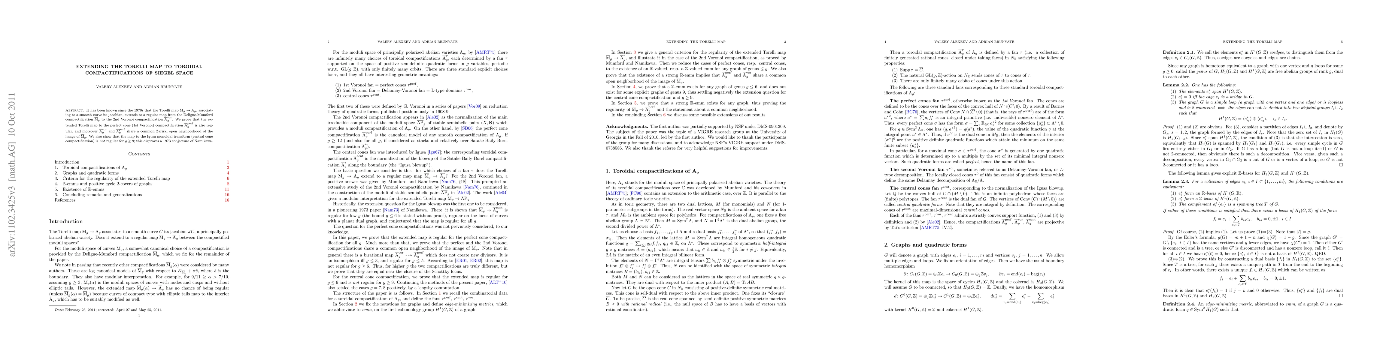 Researchers extend Torelli map to compactifications of Siegel space, disproving a 1973 conjecture for g>=9 and showing shared neighborhoods between two Voronoi compactifications.
