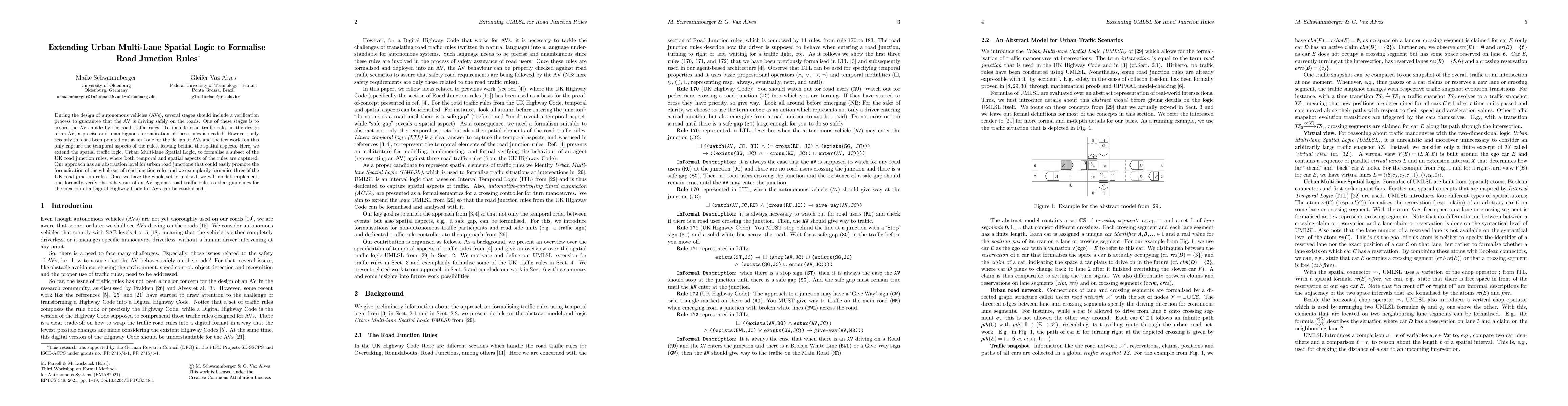 This paper extends Urban Multi-lane Spatial Logic to formalize UK road junction rules, capturing both temporal and spatial aspects. The goal is to model and verify autonomous vehicle behavior against traffic rules for creating a Digital Highway Code.
