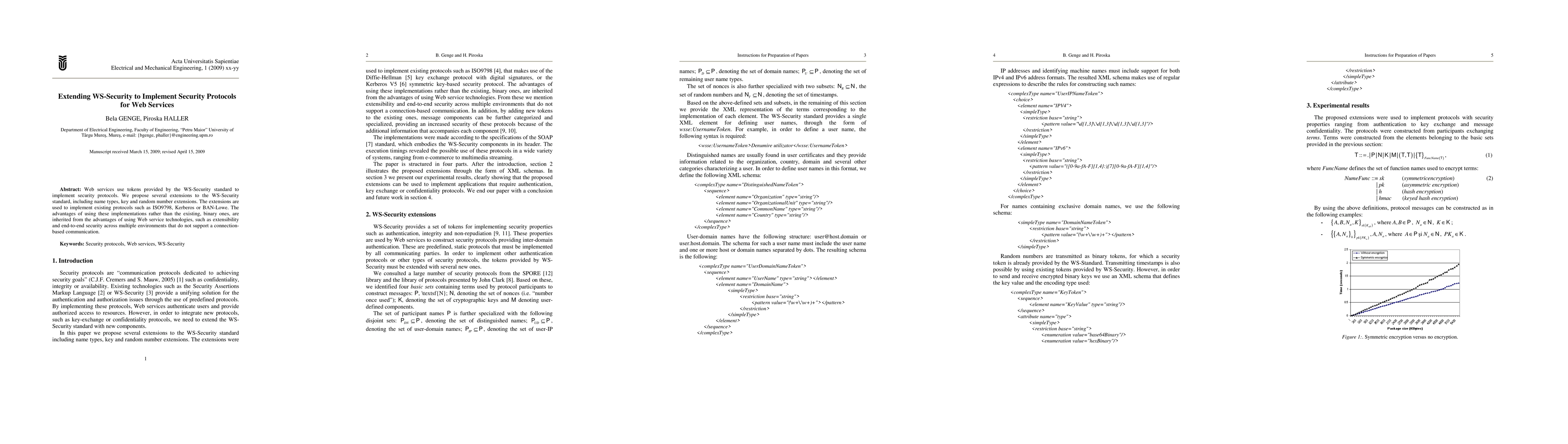 This paper proposes extensions to the WS-Security standard to implement security protocols like ISO9798, Kerberos, and BAN-Lowe, leveraging the extensibility and end-to-end security benefits of web service technologies. The proposed enhancements include name types, key, and random number extensions.