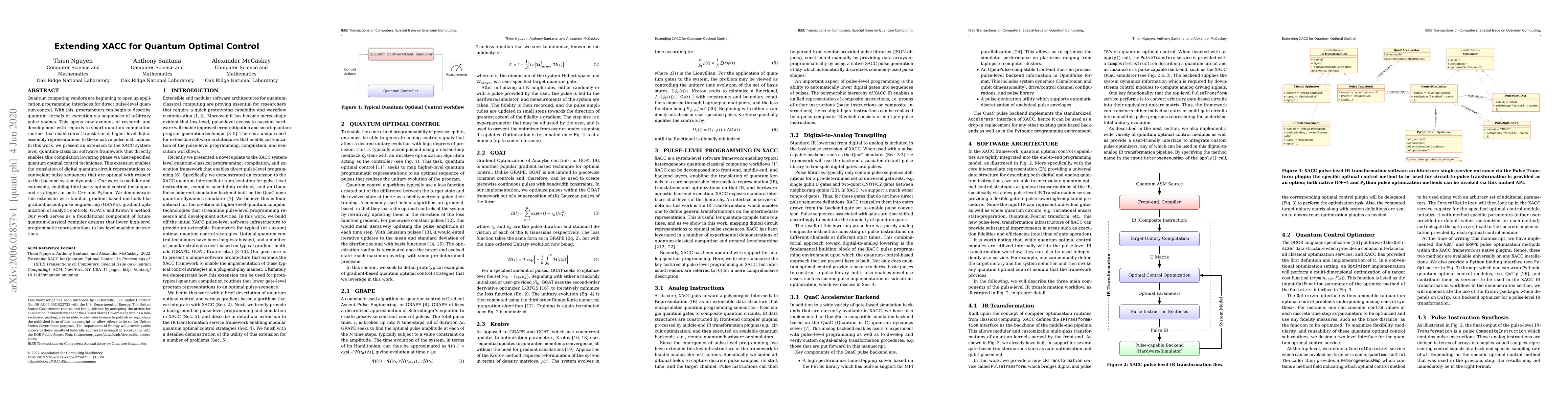 This paper extends the XACC framework to enable smart quantum compilation routines for direct translation of higher-level quantum circuits into optimal pulse sequences using quantum optimal control techniques. The proposed extension supports third-party methods and serves as a foundational component for future quantum-classical compiler designs.