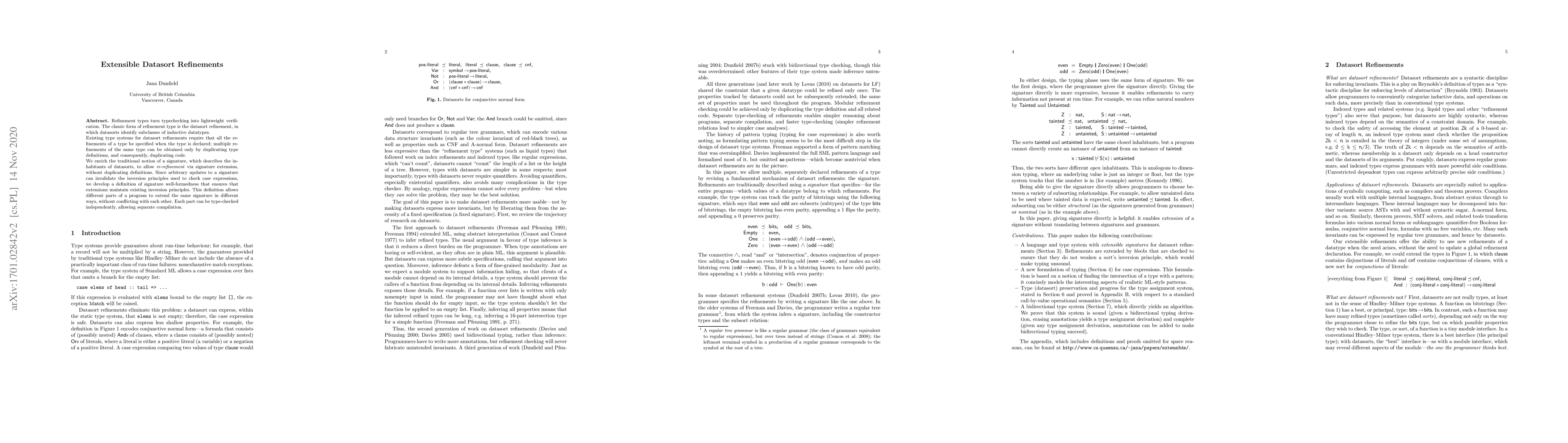 This paper proposes an extension to traditional datasort refinements that allows for re-refinement via signature extension without duplicating code. It introduces a well-formedness definition for signatures to maintain inversion principles, enabling independent type-checking and separate compilation.