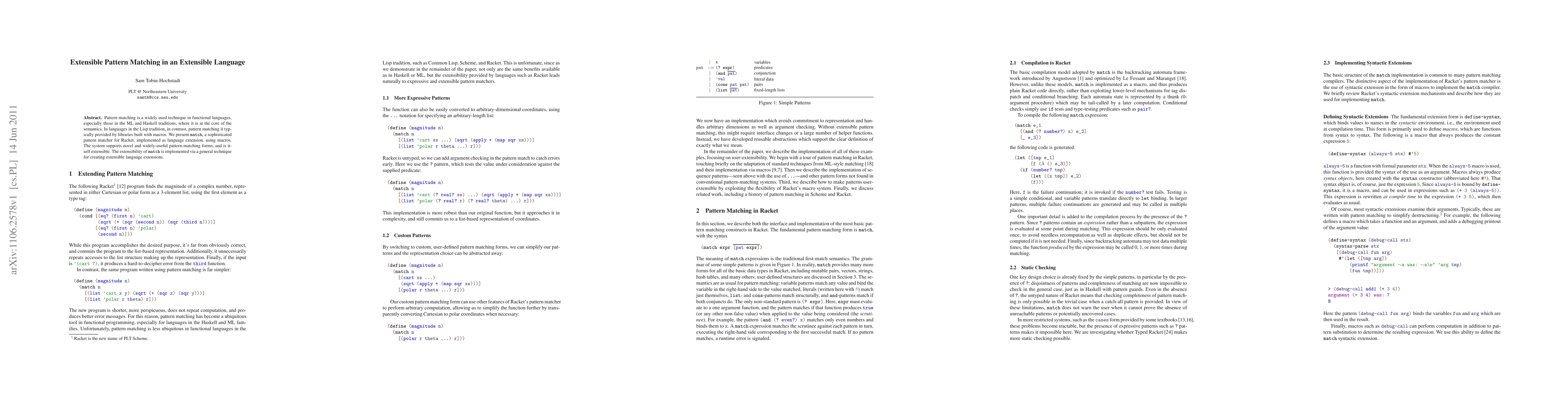 This paper introduces match, an extensible pattern matcher for Racket implemented via macros, supporting advanced pattern-matching forms and allowing for the creation of further extensions using a general technique for language extensions. The system aims to bring the benefits of pattern matching from ML and Haskell traditions to Racket.