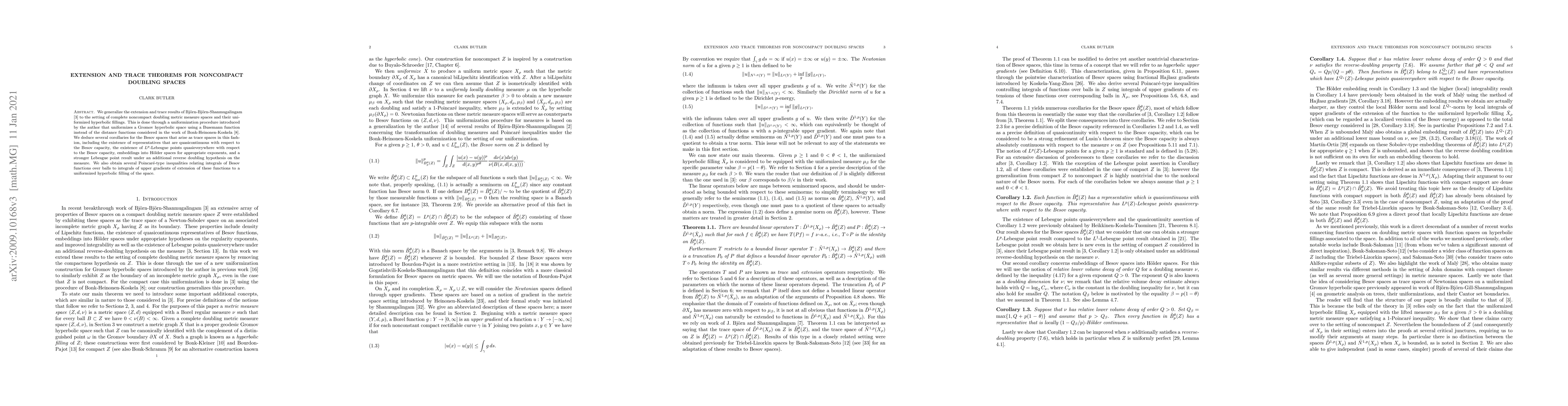 This paper extends the extension and trace theorems to complete noncompact doubling metric measure spaces via a novel uniformization technique, achieving results for Besov spaces including quasicontinuous representatives and Poincaré-type inequalities, and proving embeddings into Hölder spaces under certain conditions.