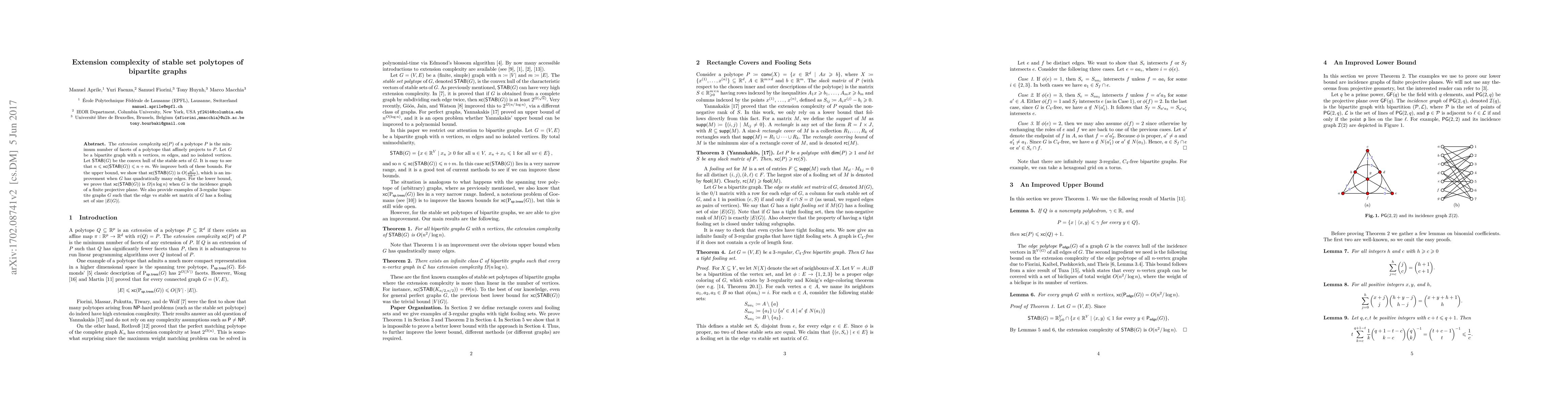 The extension complexity $\mathsf{xc}(P)$ of a polytope $P$ is the minimum number of facets of a polytope that affinely projects to $P$. Let $G$ be a bipartite graph with $n$ vertices, $m$ edges, and no isolated vertices. Let $\mathsf{STAB}(G)$ be the convex hull of the stable sets of $G$. It is easy to see that $n \leqslant \mathsf{xc} (\mathsf{STAB}(G)) \leqslant n+m$. We improve both of these bounds. For the upper bound, we show that $\mathsf{xc} (\mathsf{STAB}(G))$ is $O(\frac{n^2}{\log n})$, which is an improvement when $G$ has quadratically many edges. For the lower bound, we prove that $\mathsf{xc} (\mathsf{STAB}(G))$ is $\Omega(n \log n)$ when $G$ is the incidence graph of a finite projective plane. We also provide examples of $3$-regular bipartite graphs $G$ such that the edge vs stable set matrix of $G$ has a fooling set of size $|E(G)|$.