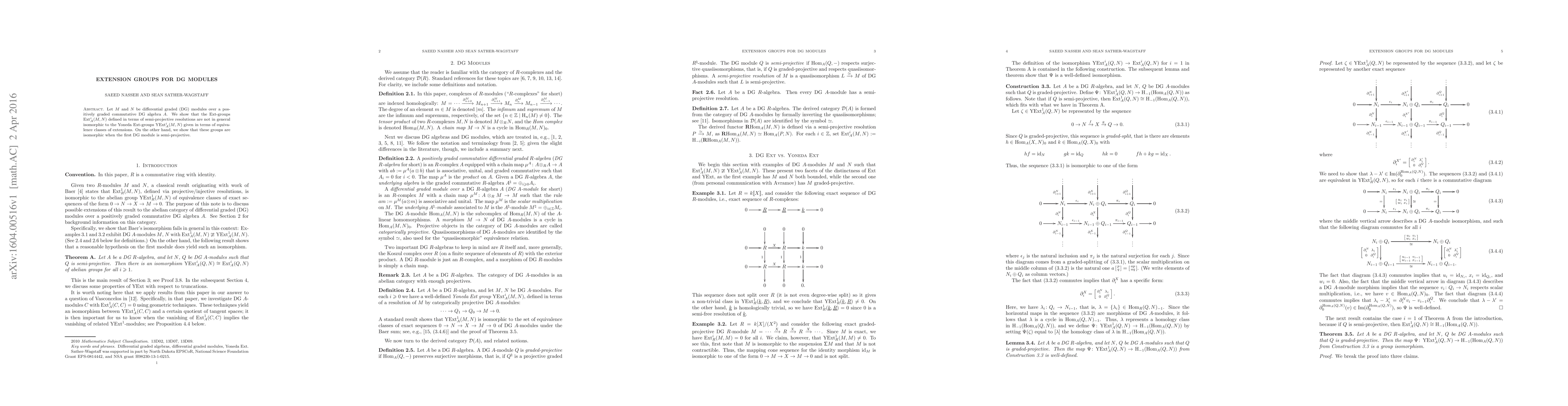 This paper demonstrates that Ext-groups for DG modules, defined via semi-projective resolutions, do not generally match Yoneda Ext-groups derived from extension classes. However, it proves that these groups coincide when the first DG module is semi-projective.