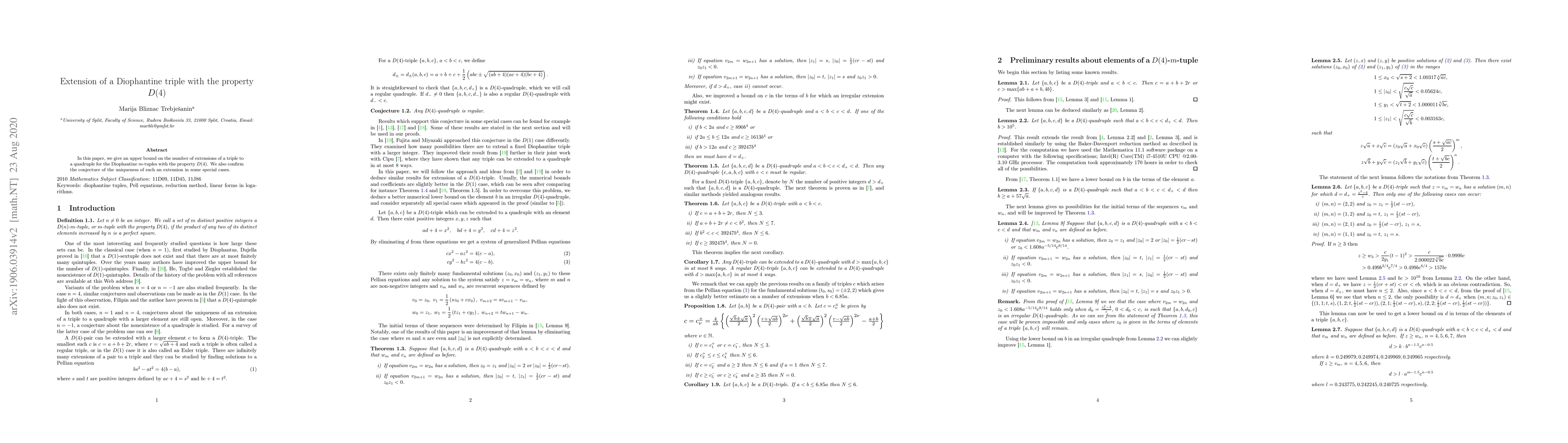 Researchers found an upper bound on the number of extensions of a Diophantine triple to a quadruple with a specific property, confirming some conjectures along the way.