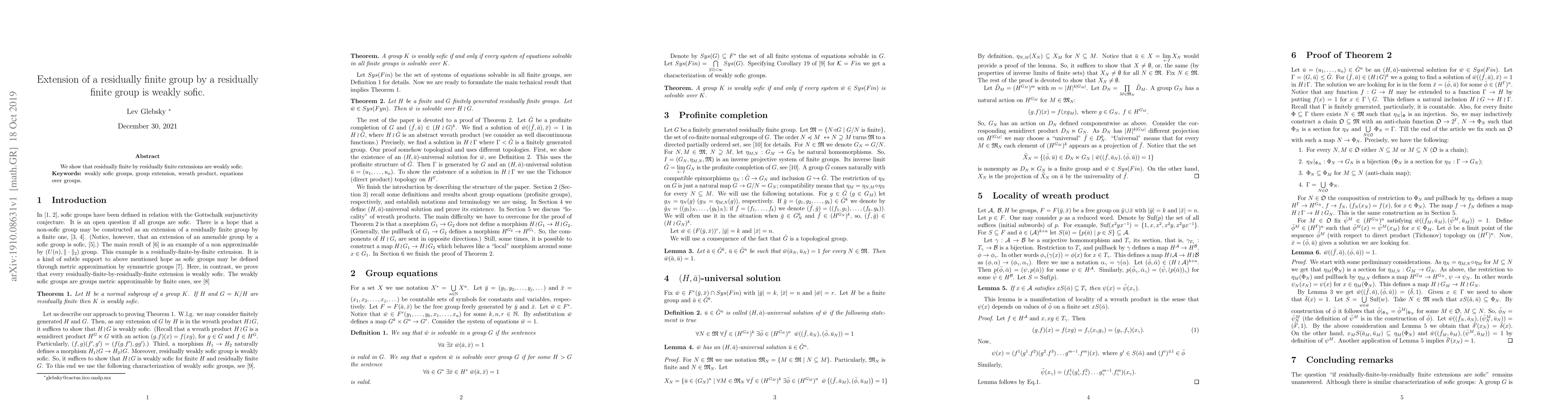 **Summary:** This paper demonstrates that if you extend a residually finite group by another residually finite group, the resulting extension is weakly sofic, introducing a new perspective on group extensions and sofic groups.