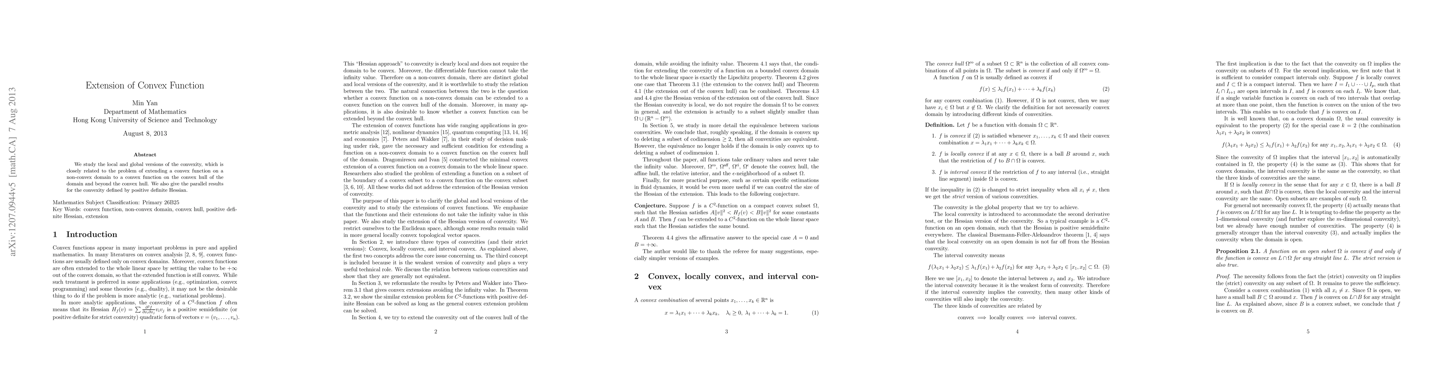 This paper studies how to extend a convex function onto a non-convex domain while preserving its convexity, with implications for optimization problems in complex spaces.