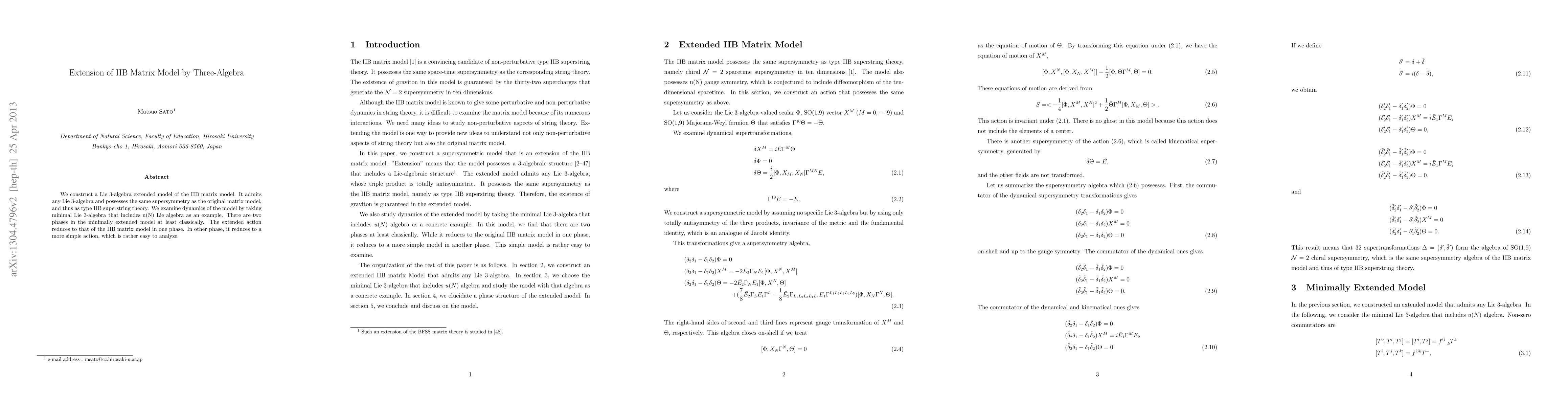This paper constructs an extended Lie 3-algebra model of the IIB matrix model, maintaining the same supersymmetry as type IIB superstring theory. It explores the dynamics using a minimal Lie 3-algebra, identifying at least two classical phases, with the action reducing to the IIB matrix model in one phase and a simpler form in the other.