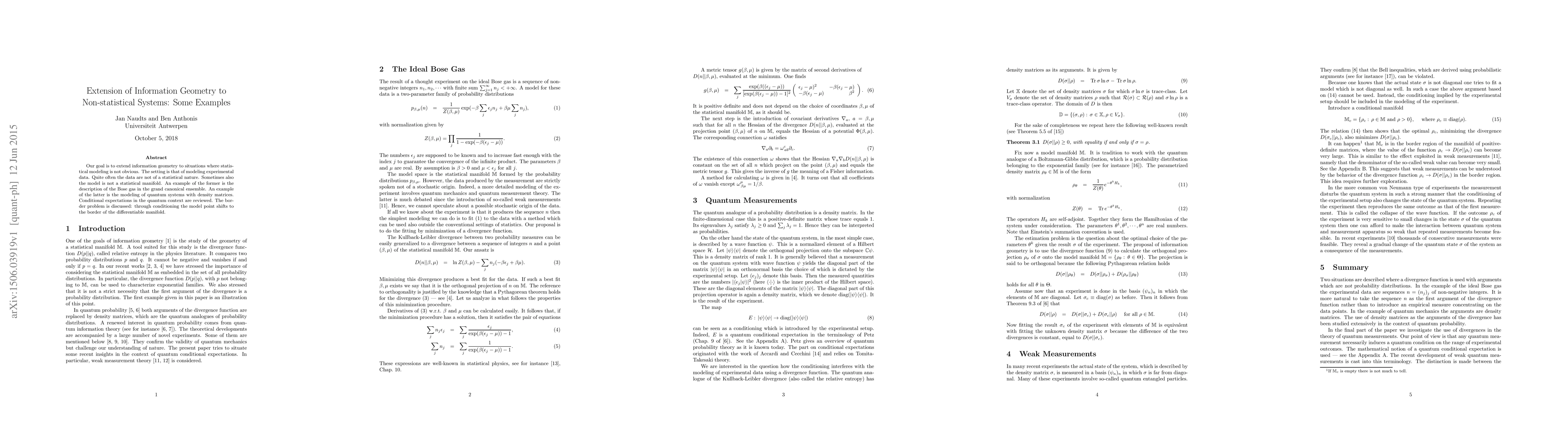 This paper aims to extend information geometry to non-statistical systems, particularly in modeling experimental data where traditional statistical methods are not applicable. It discusses examples like Bose gas and quantum systems, highlighting the shift to the border of differentiable manifolds through conditioning.