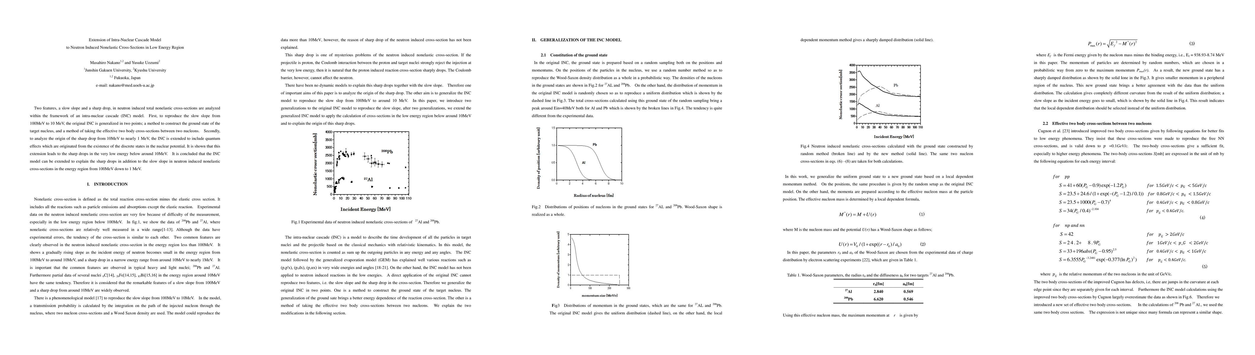 Two features, a slow slope and a sharp drop, in neutron induced total nonelastic cross-sections are analyzed within the framework of an intra-nuclear cascade (INC) model. First, to reproduce the slow slope from 100MeV to 10 MeV, the original INC is generalized in two points; a method to construct the ground state of the target nucleus, and a method of taking the effective two body cross-sections between two nucleons. Secondly, to analyze the origin of the sharp drop from 10MeV to nearly 1 MeV, the INC is extended to include quantum effects which are originated from the existence of the discrete states in the nuclear potential. It is shown that this extension leads to the sharp drops in the very low energy below around 10MeV. It is concluded that the INC model can be extended to explain the sharp drops in addition to the slow slope in neutron induced nonelastic cross-sections in the energy region from 100MeV down to 1 MeV.