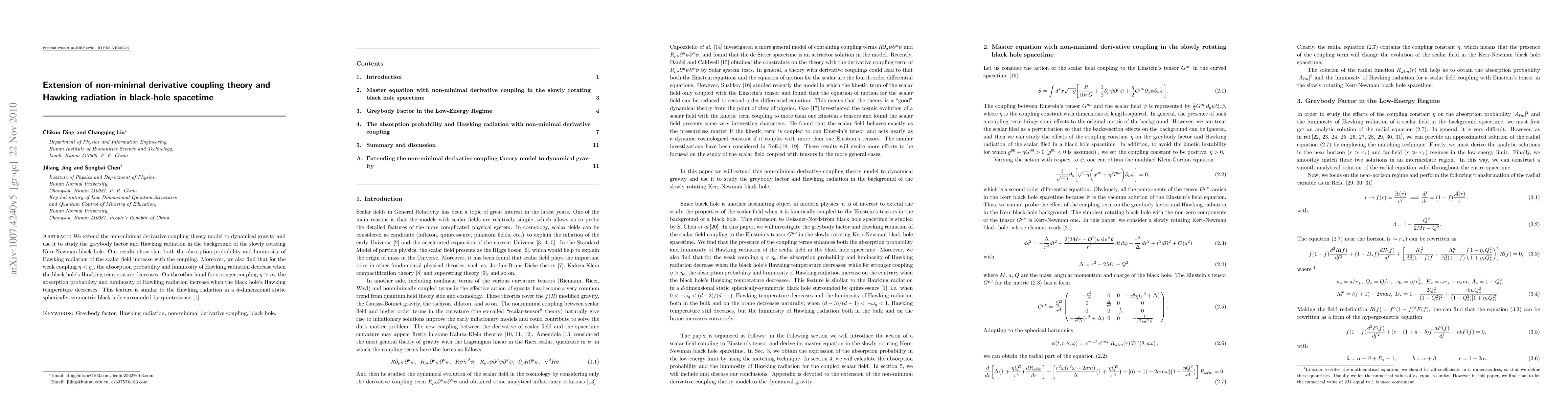 We study the greybody factor and Hawking radiation with a non-minimal derivative coupling between the scalar field and the curvature in the background of the slowly rotating Kerr-Newman black hole. Our results show that both the absorption probability and luminosity of Hawking radiation of the scalar field increase with the coupling. Moreover, we also find that for the weak coupling $\eta<\eta_c$, the absorption probability and luminosity of Hawking radiation decrease when the black hole's Hawking temperature decreases; while for stronger coupling $\eta>\eta_c$, the absorption probability and luminosity of Hawking radiation increase on the contrary when the black hole's Hawking temperature decreases. This feature is similar to the Hawking radiation in a $d$-dimensional static spherically-symmetric black hole surrounded by quintessence \cite{chensong}.