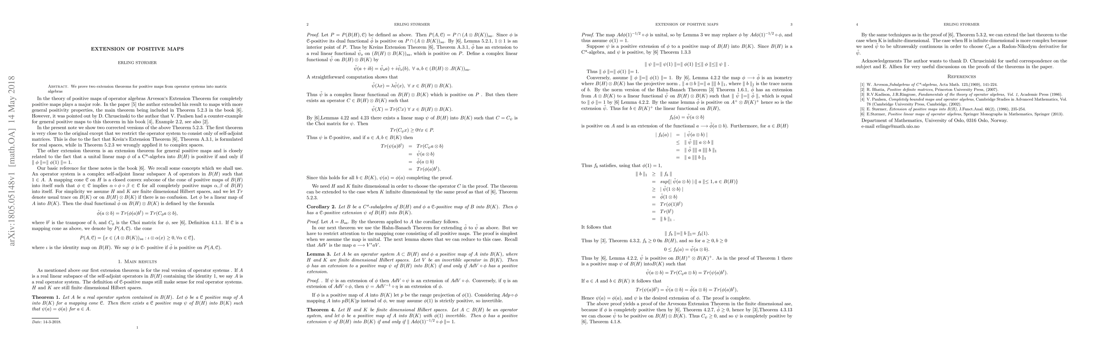Summary: This paper establishes two theorems that extend positive maps from operator systems to matrix algebras, providing significant advancements in the theory of operator systems. The results enhance the understanding of how these maps can be generalized and applied in various mathematical contexts.