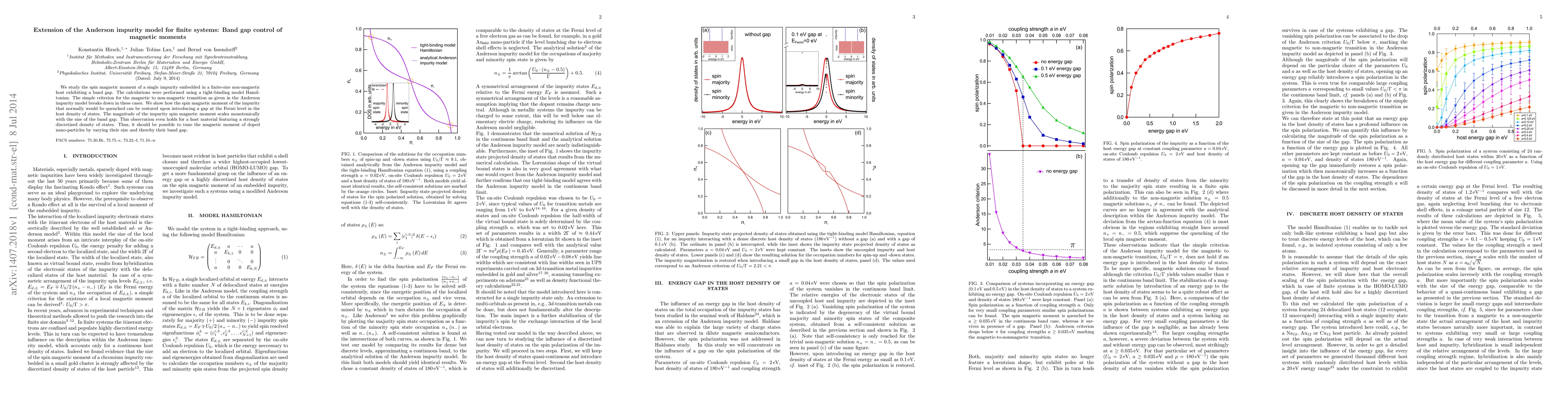 We study the spin magnetic moment of a single impurity embedded in a finite-size non-magnetic host exhibiting a band gap. The calculations were performed using a tight-binding model Hamiltonian. The simple criterion for the magnetic to non-magnetic transition as given in the Anderson impurity model breaks down in these cases. We show how the spin magnetic moment of the impurity that normally would be quenched can be restored upon introducing a gap at the Fermi level in the host density of states. The magnitude of the impurity spin magnetic moment scales monotonically with the size of the band gap. This observation even holds for a host material featuring a strongly discretized density of states. Thus, it should be possible to tune the magnetic moment of doped nano-particles by varying their size and thereby their band gap.