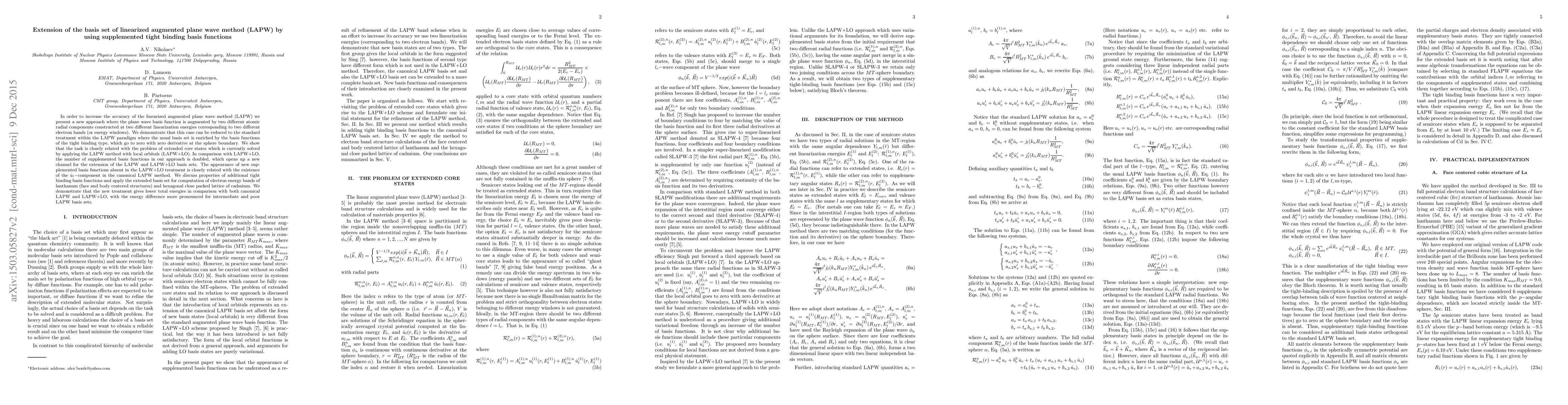 The paper introduces an extension of the LAPW method by augmenting the plane wave basis with supplementary tight-binding basis functions constructed at two different linearization energies, effectively doubling the number of supplemented basis functions compared to LAPW+LO.