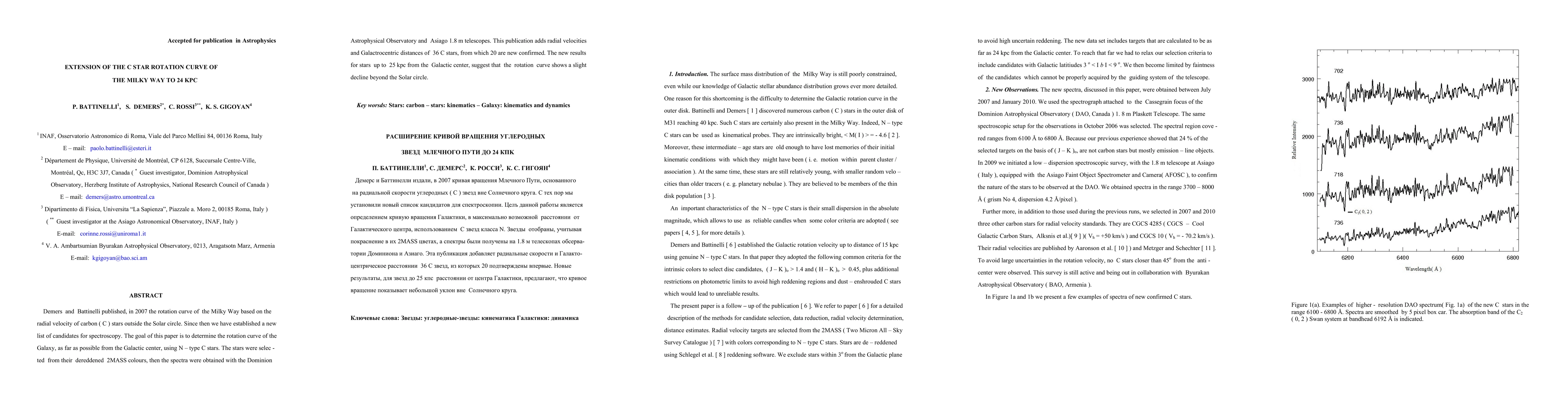 The research presents new data and analysis techniques for measuring the rotation curve of the Milky Way using spectroscopy of carbon stars.